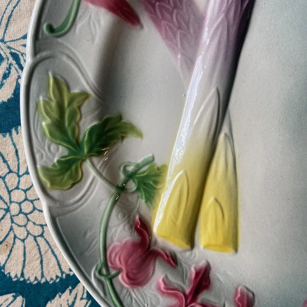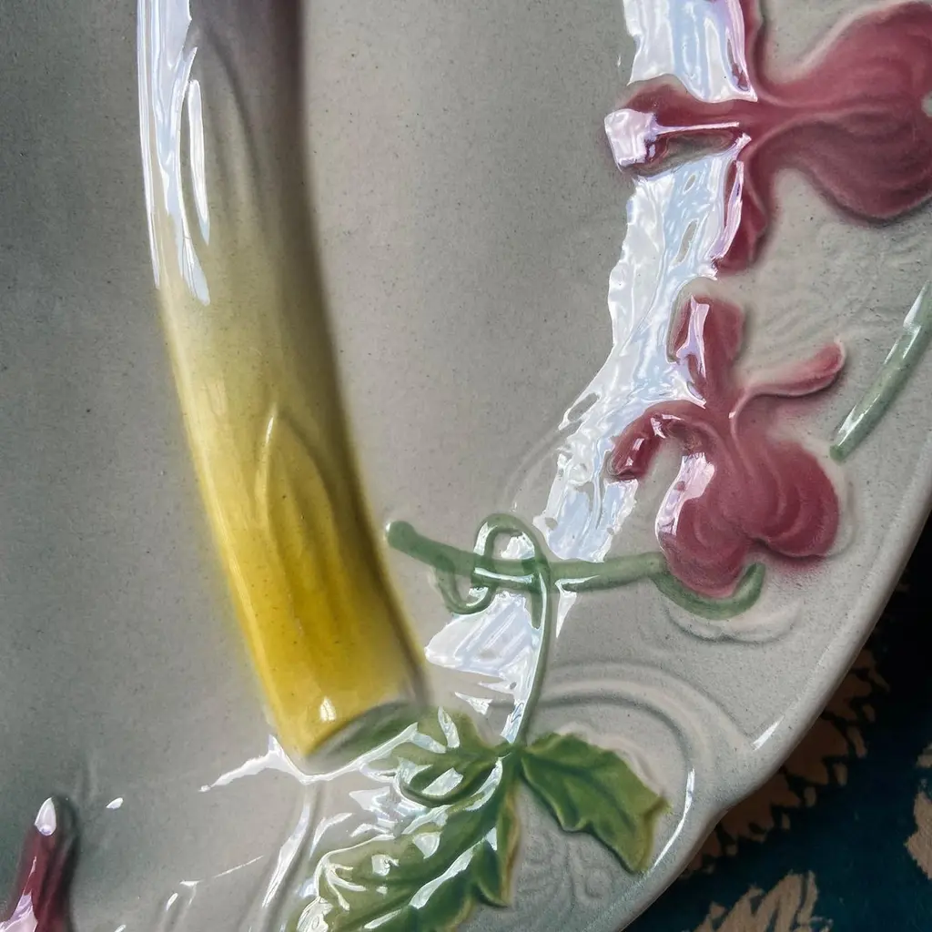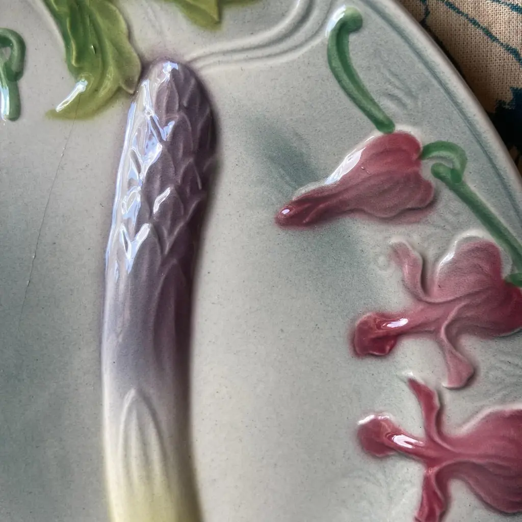 French Art Nouveau Majolica Asparagus Plates Saint Clément, 1920s