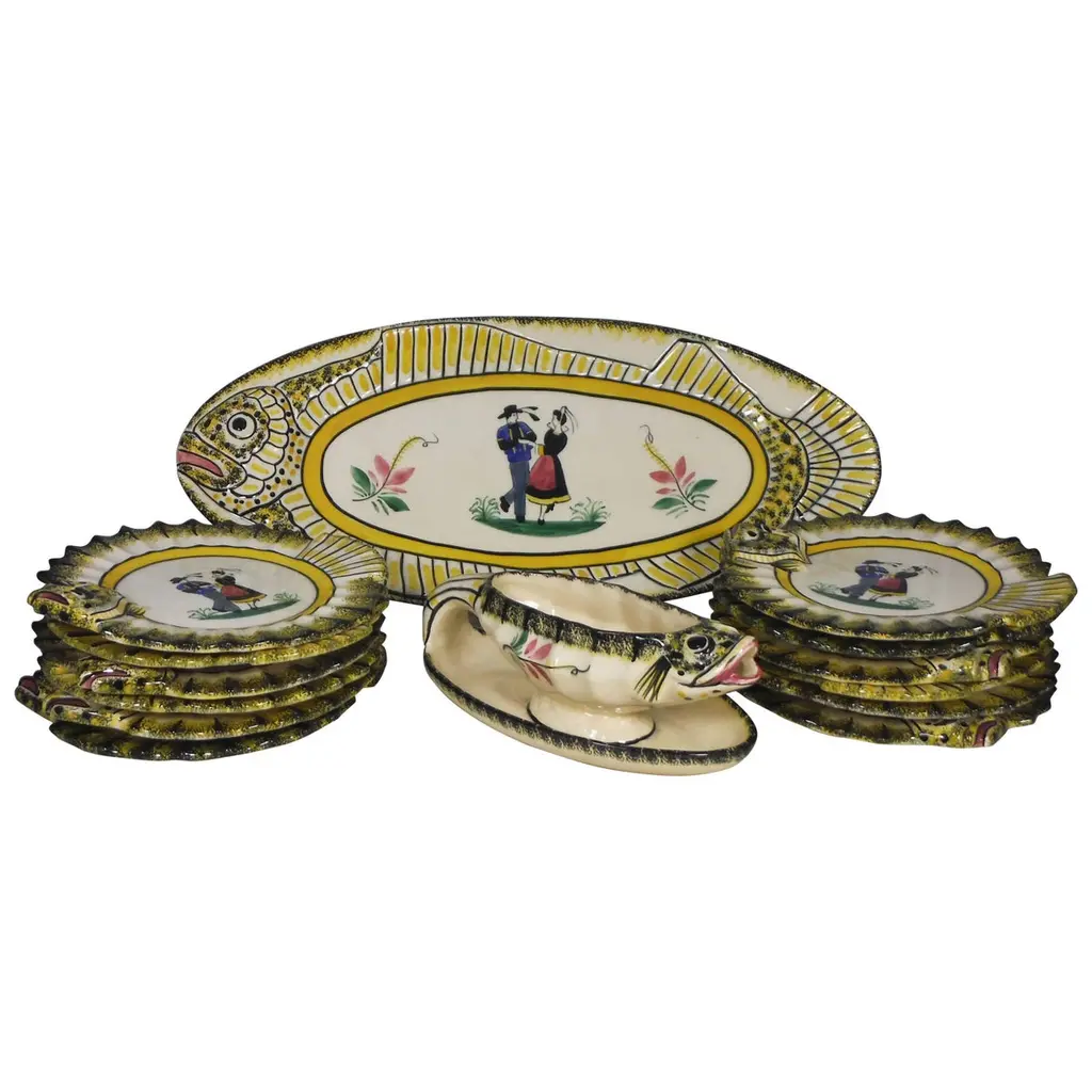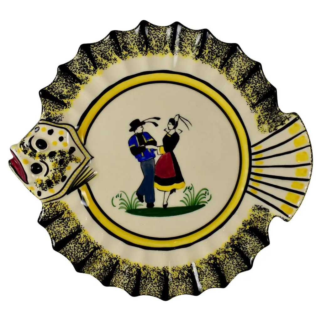French Faience Fish Head Plate Henriot Quimper, Circa 1940