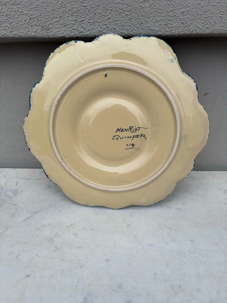French faience oyster plate signed Henriot Quimper, circa 1930.