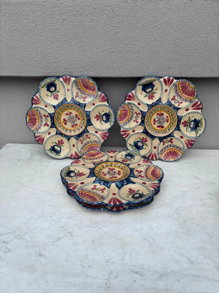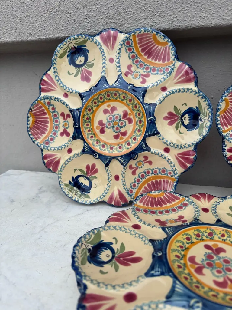 French Faience Oyster Plate Henriot Quimper, Circa 1930