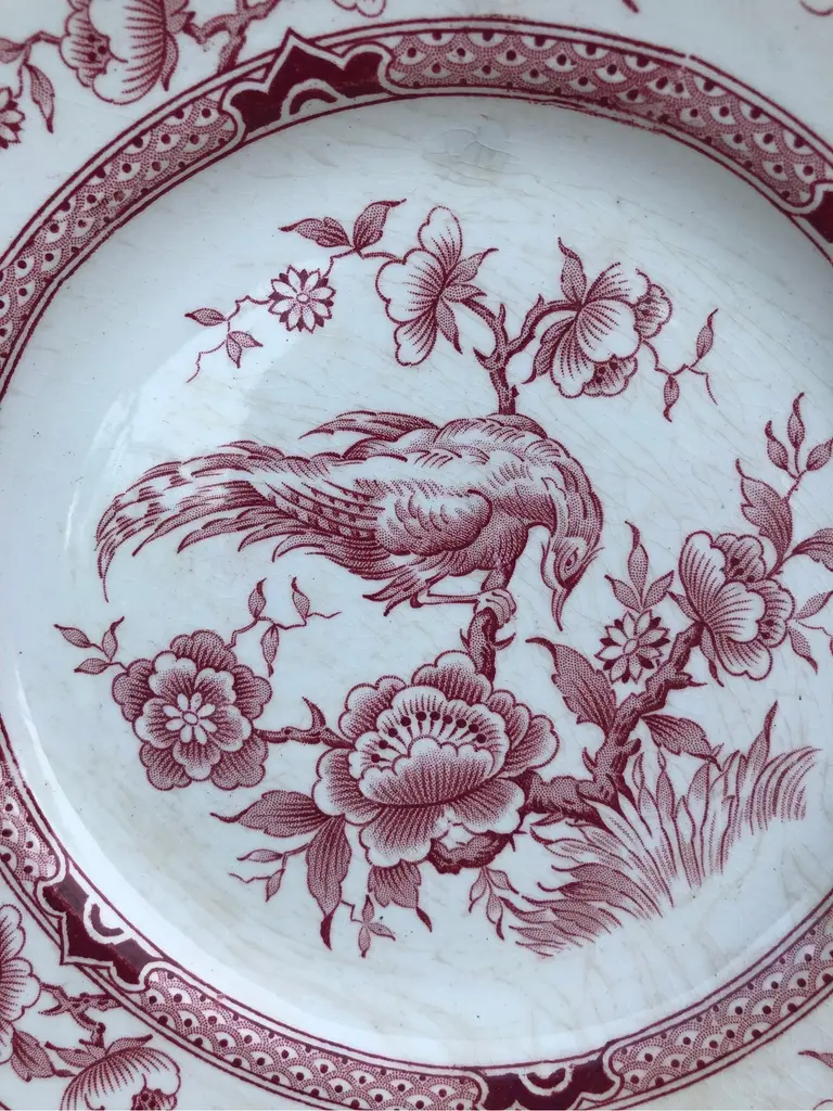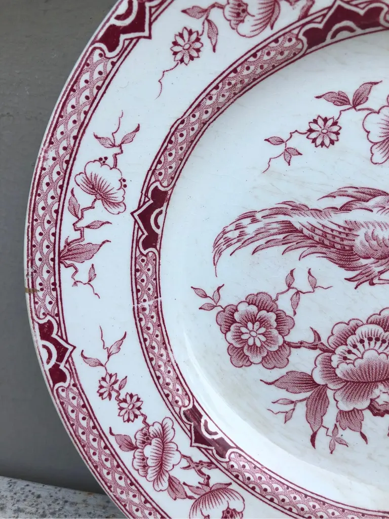 French Faience Pink Bird Chinoiserie Plate Orchies, Circa 1900