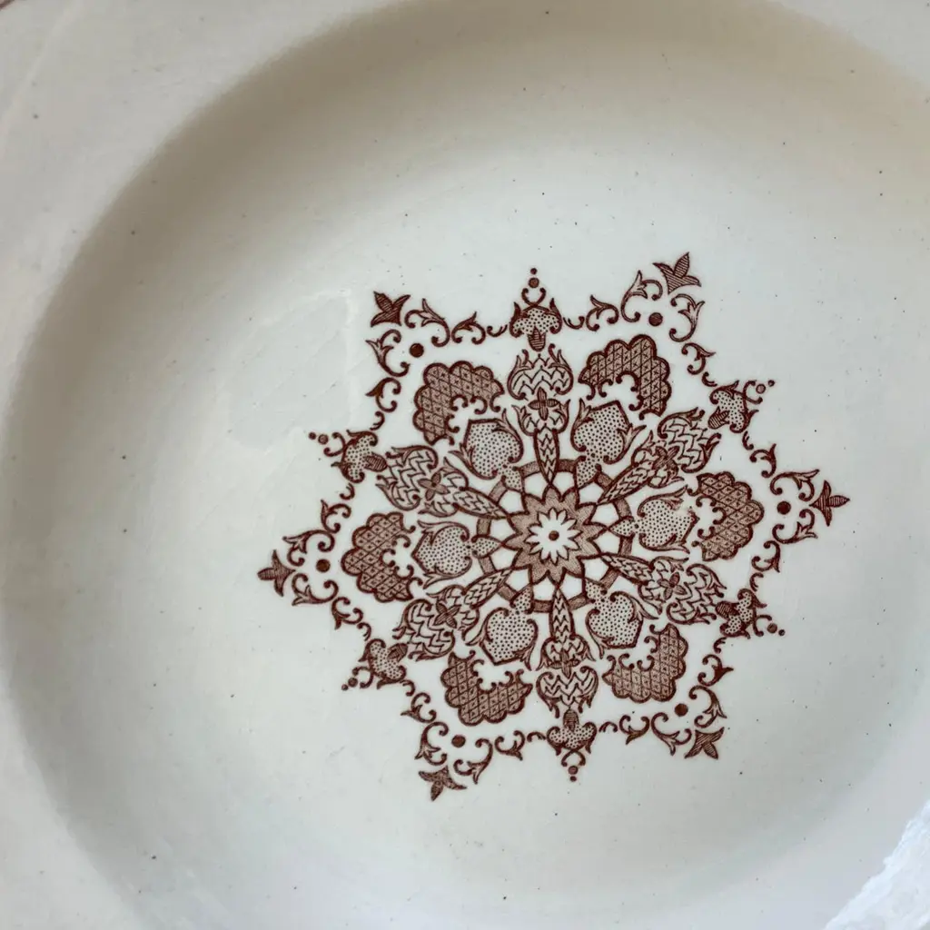 French Faience Snowflakes Soup Plate Salins, Circa 1890