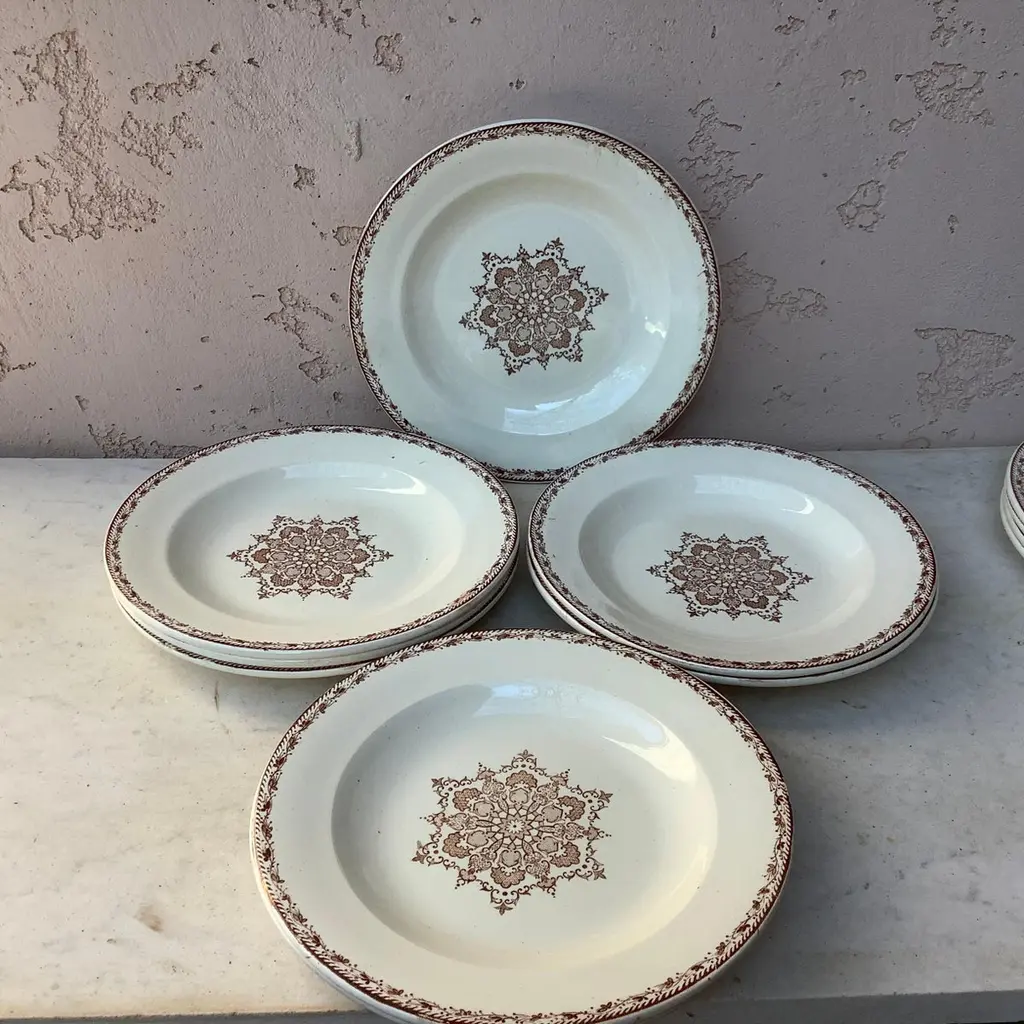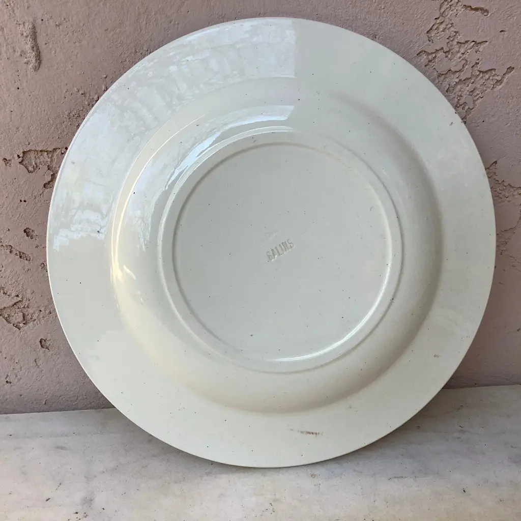 French faience soup plate signed Salins, circa 1890.Decorated with snowflakes.8 plates available.