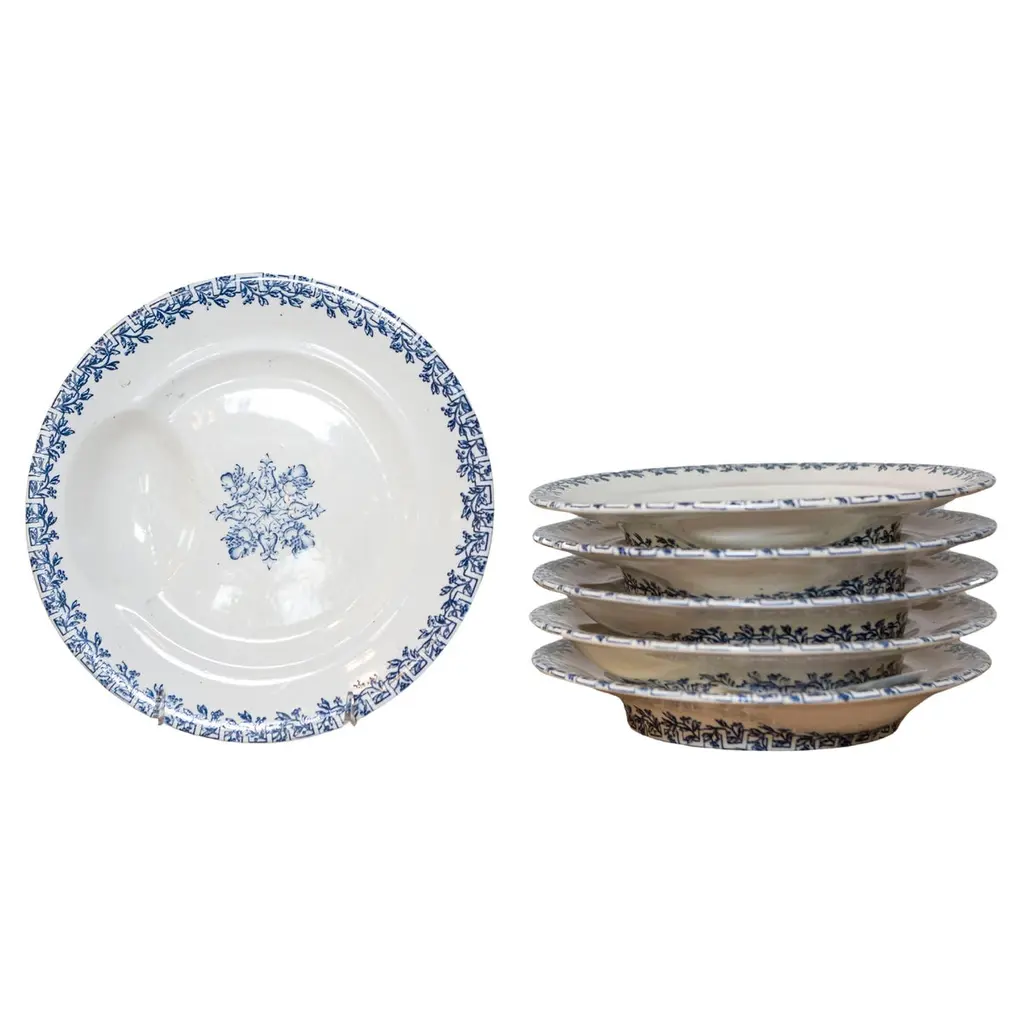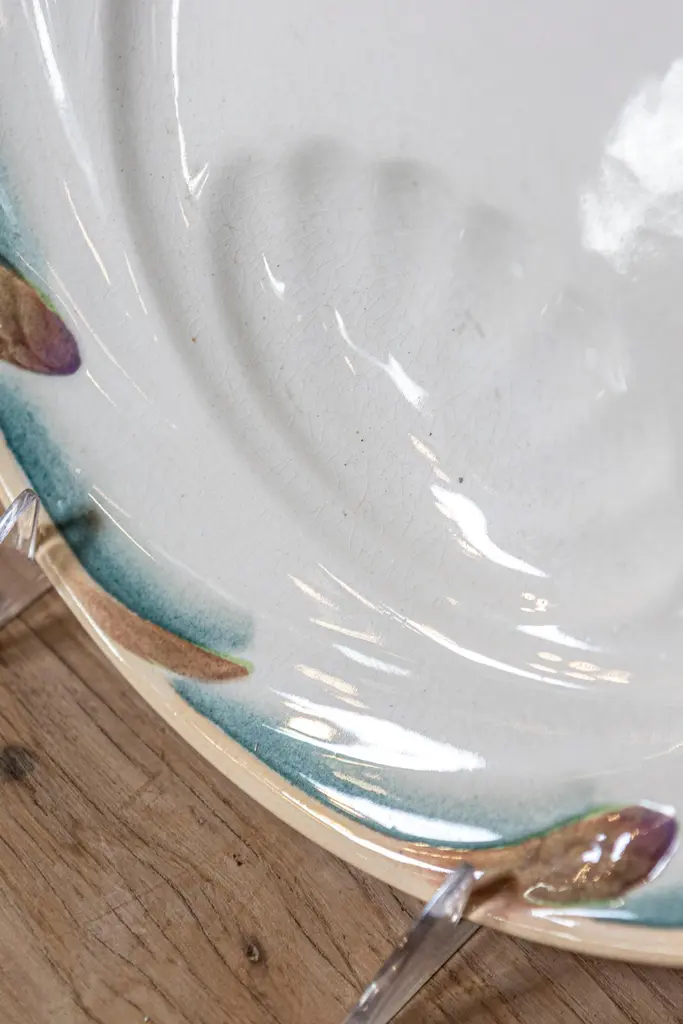 French Late 19th Century Sarreguemines Asparagus Plates With Shell Shaped Hole