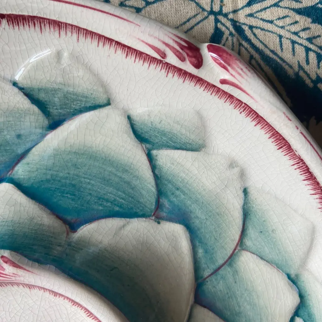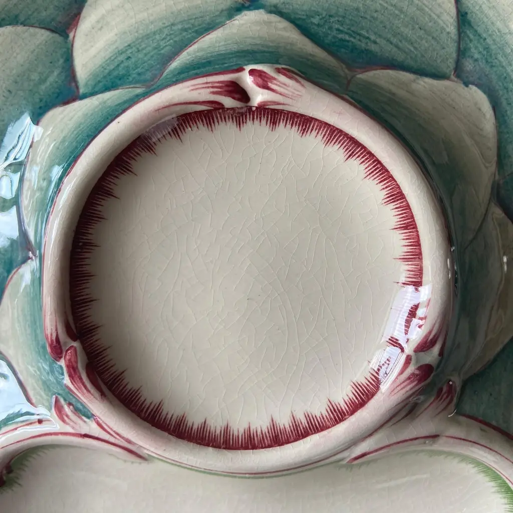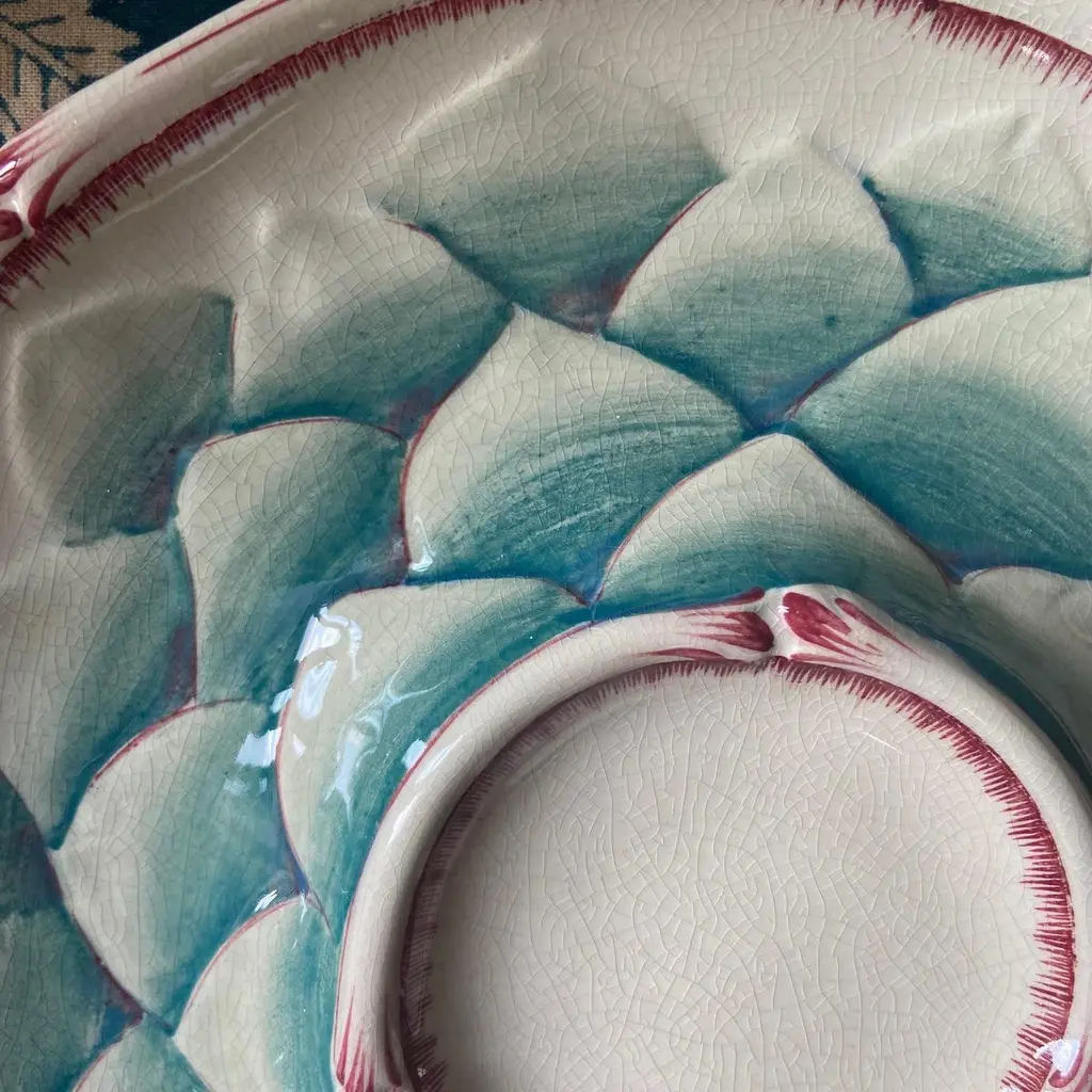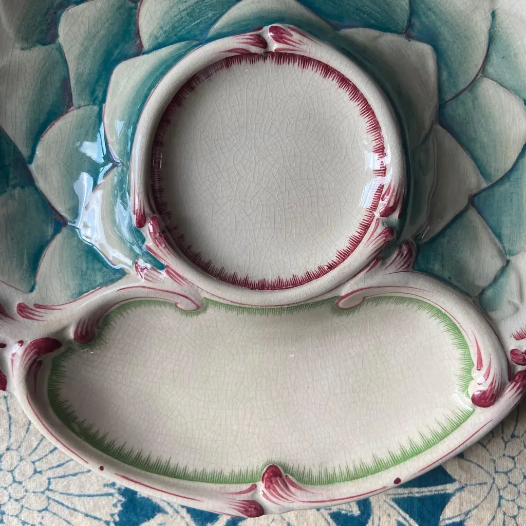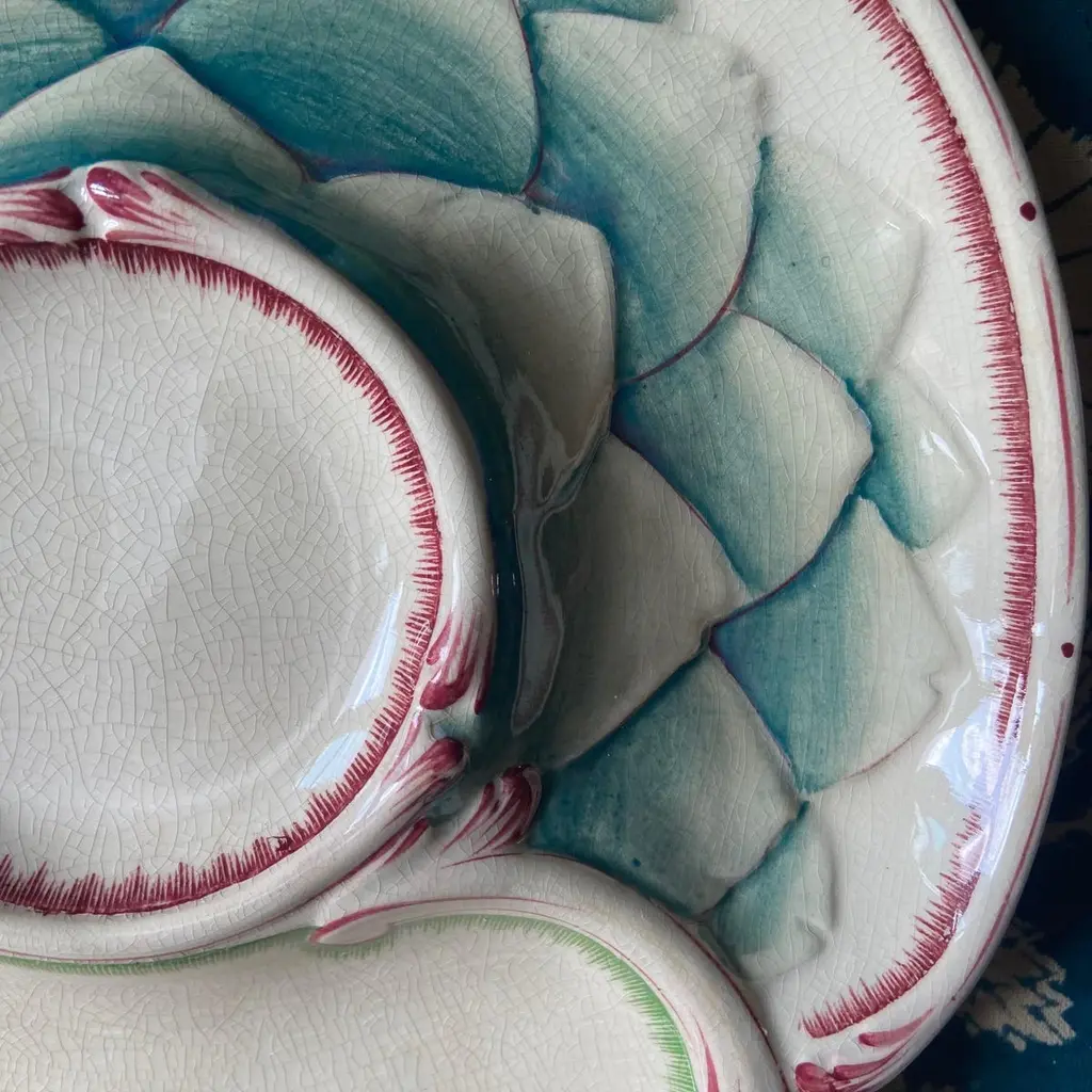 Introduced into France for Queen Catherine de Medicis, who was fond of it, the artichoke acquired its letters of nobility by becoming one of the favorite dishes of Louis XIV.Like for asparagus, renowned manufacturers have dedicated part of their production to them.This artichoke plate is particularly rare, and will be a great find for a collector,. It can also be used as a sophisticated appetizer / tapas tray.