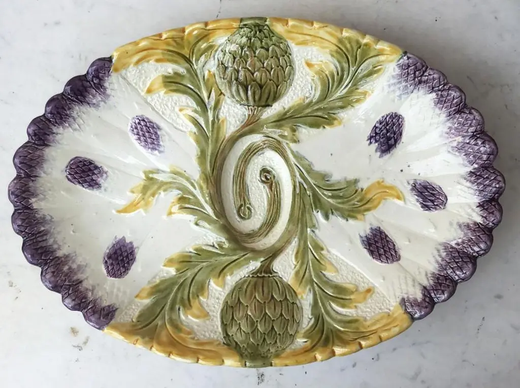 French Majolica Asparagus Plate Orchies, Circa 1890