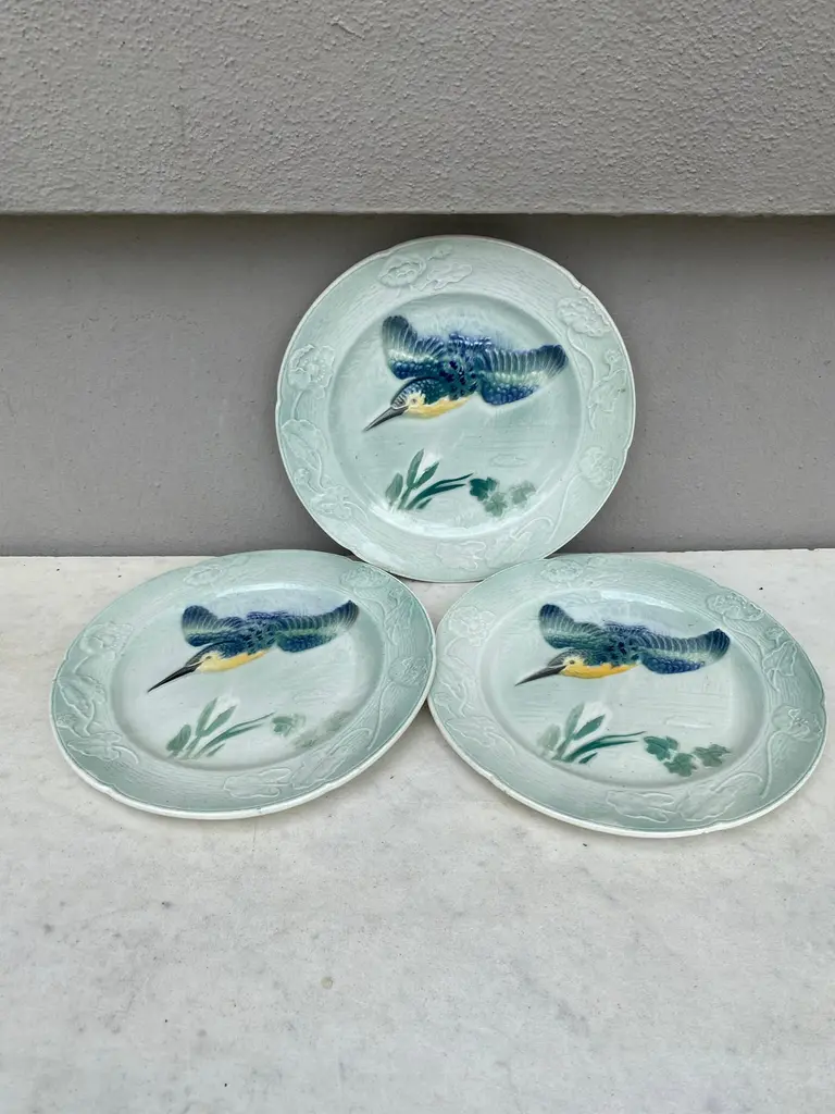 French Majolica Bird Plate Keller & Guerin Saint Clement Circa 1900