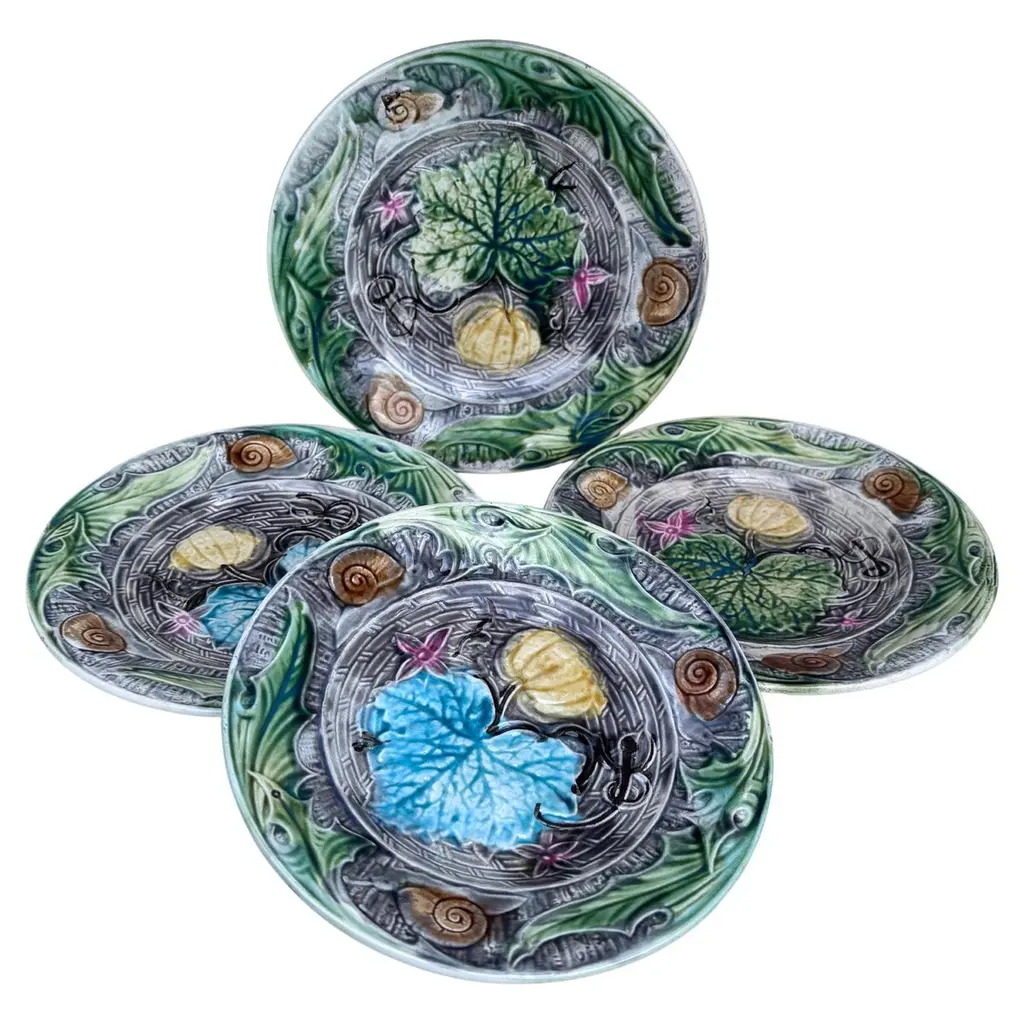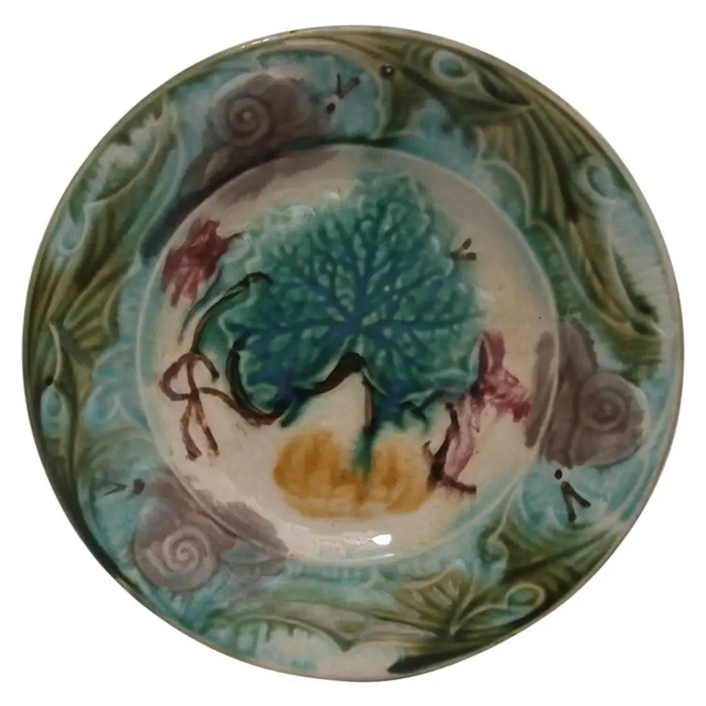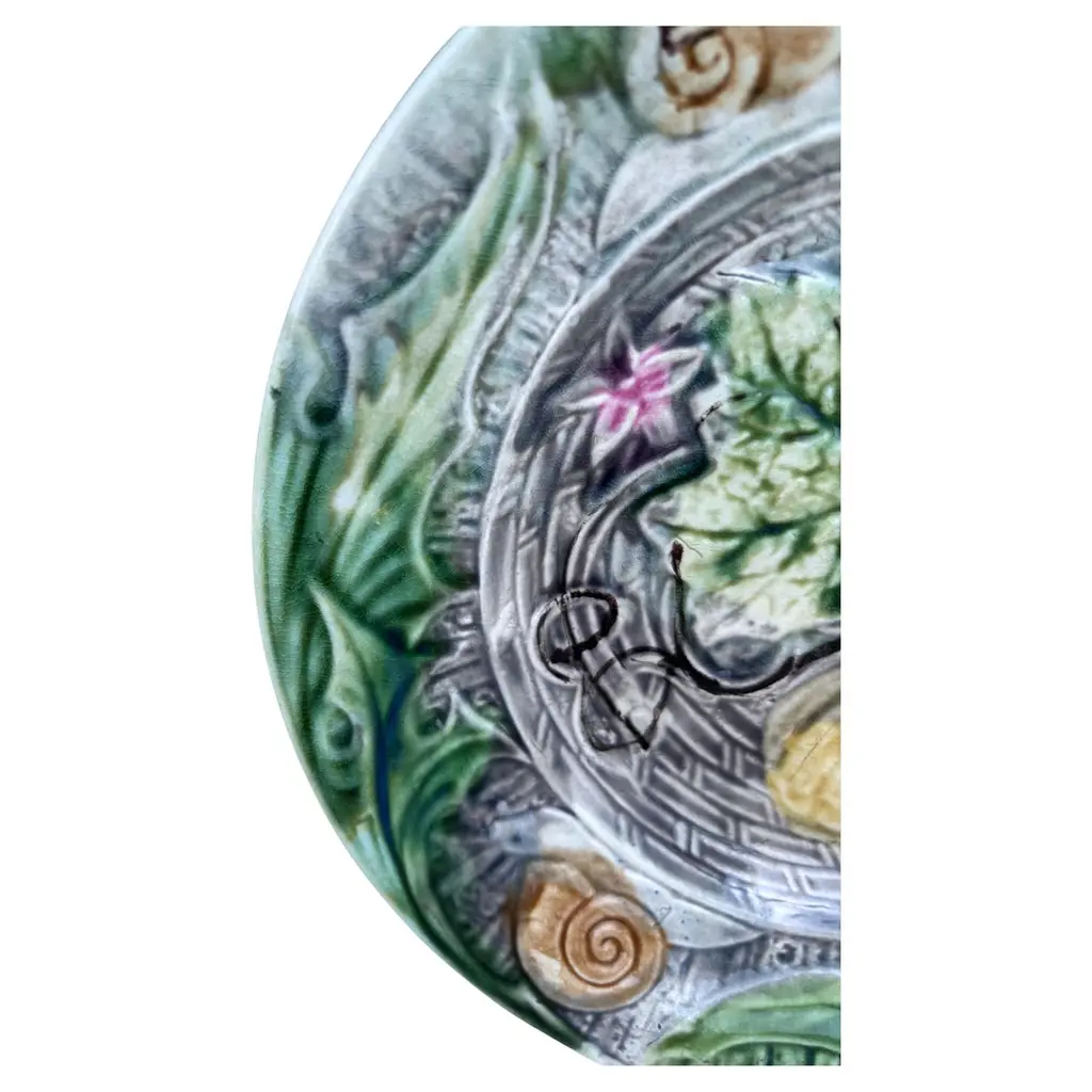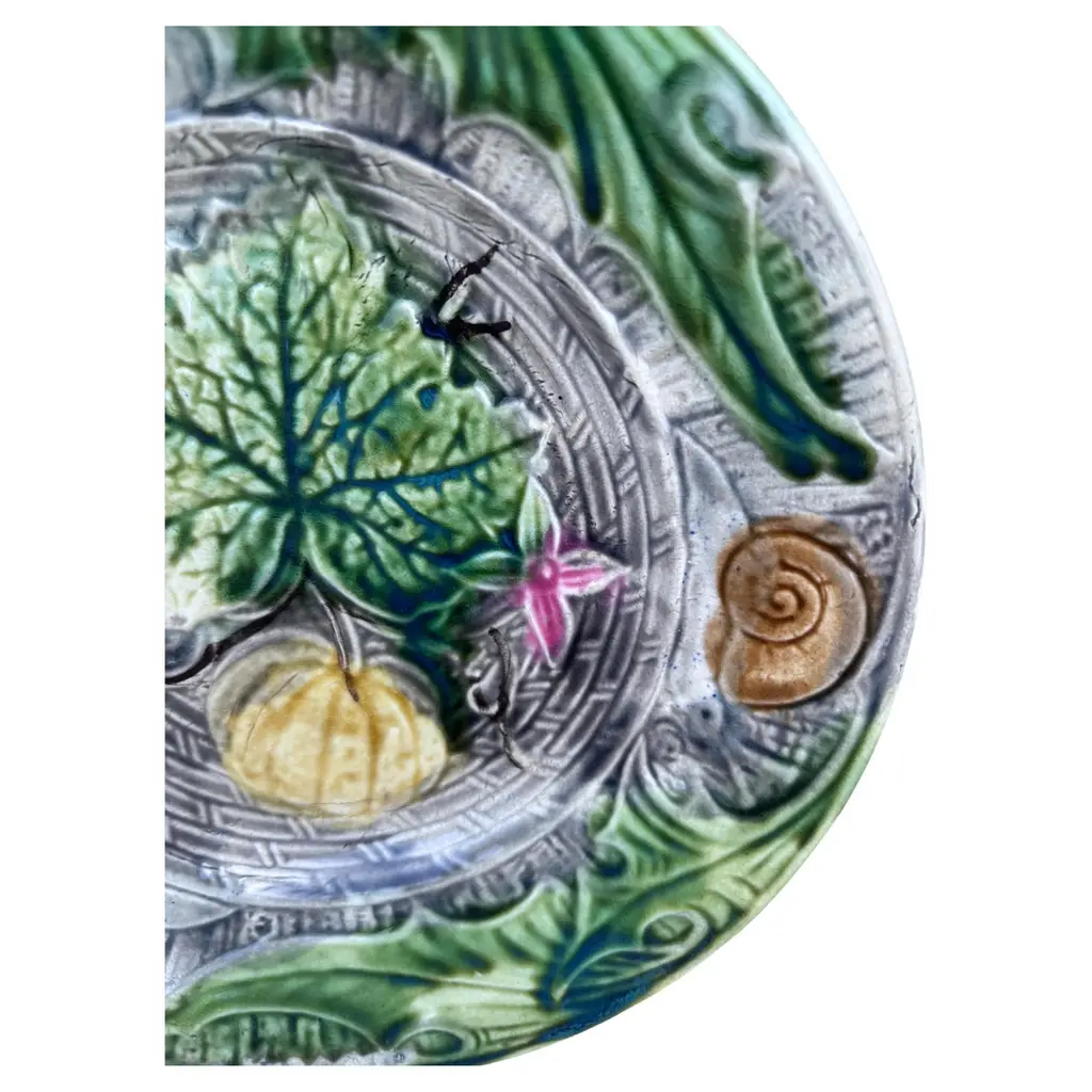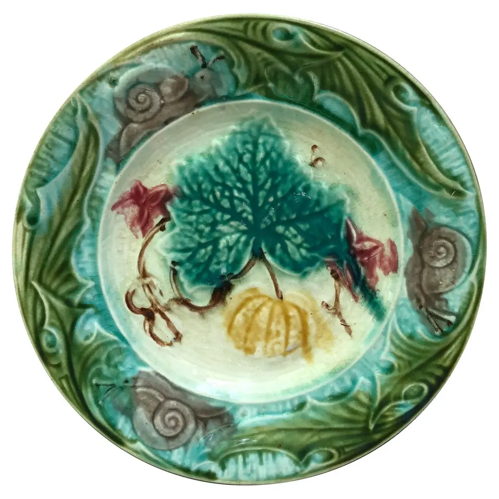 French Majolica Plate With Pumpkin & Snail Onnaing, Circa 1890