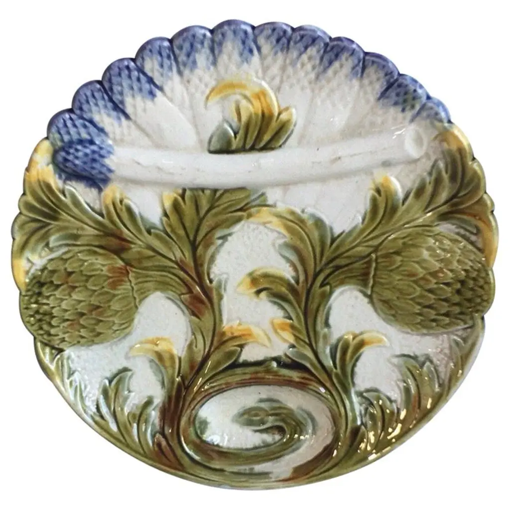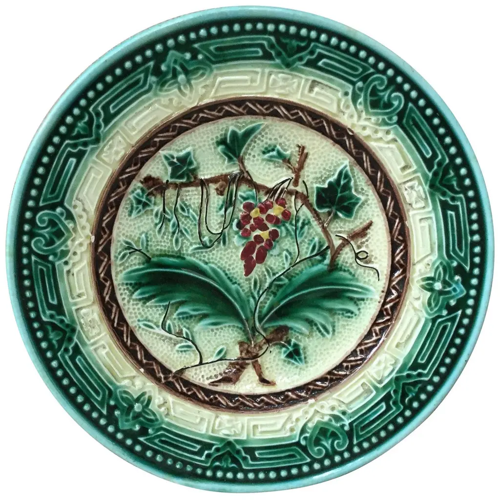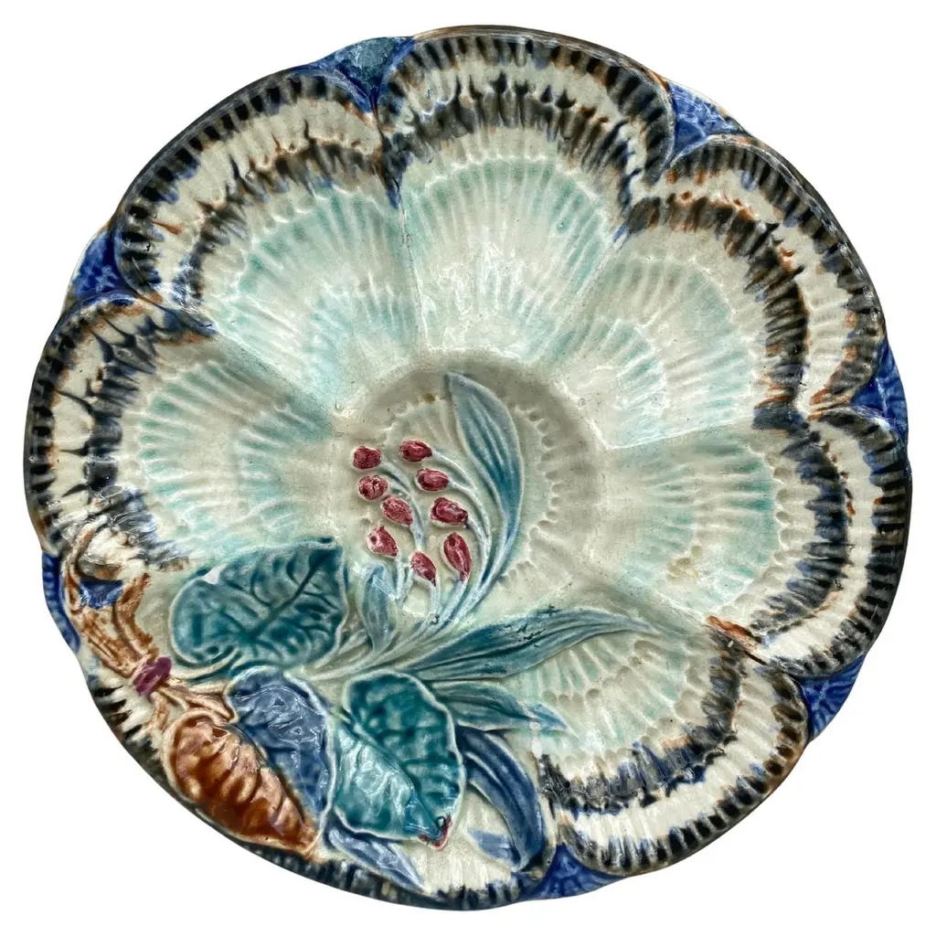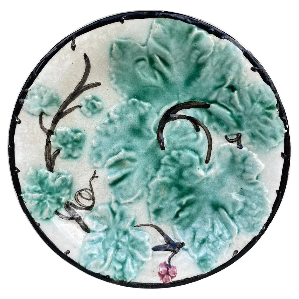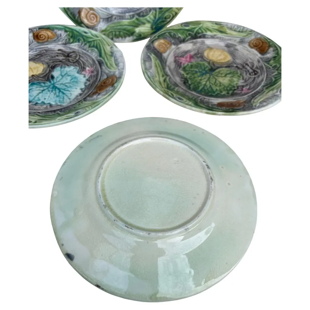 French Majolica Plate With Pumpkin & Snail Onnaing, Circa 1890