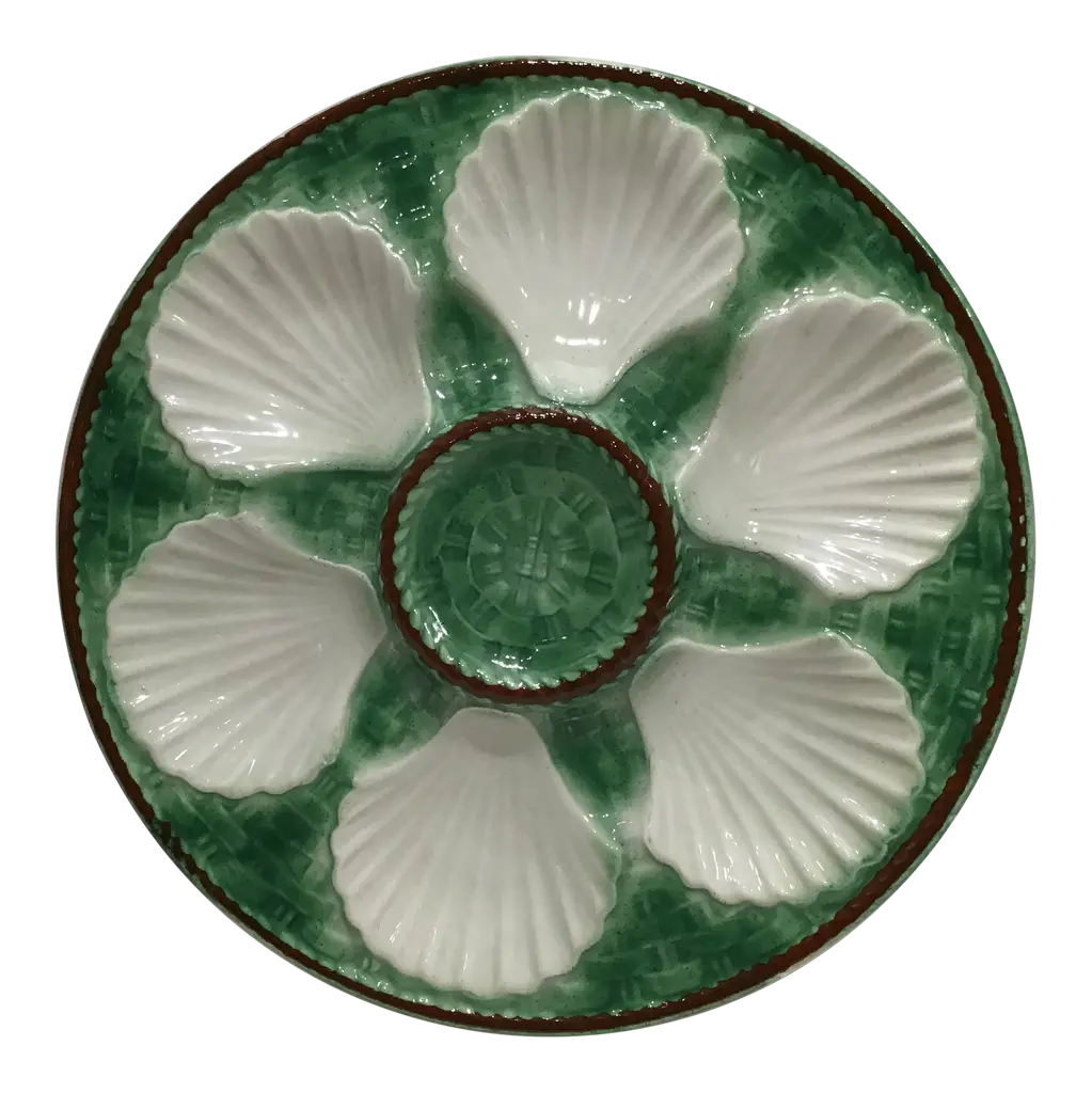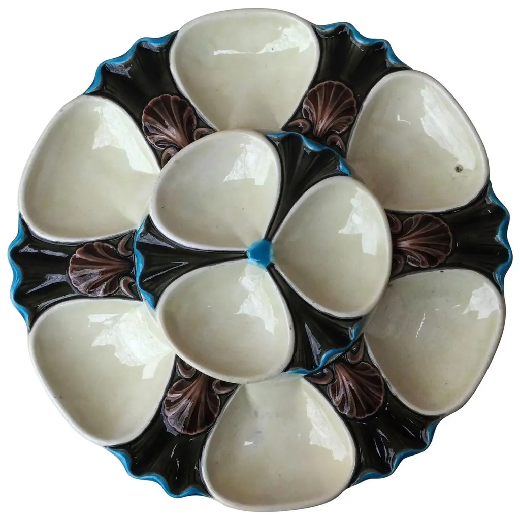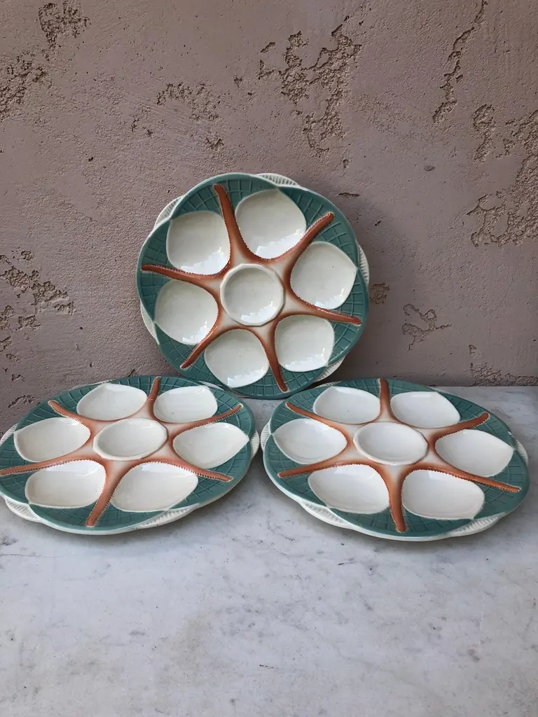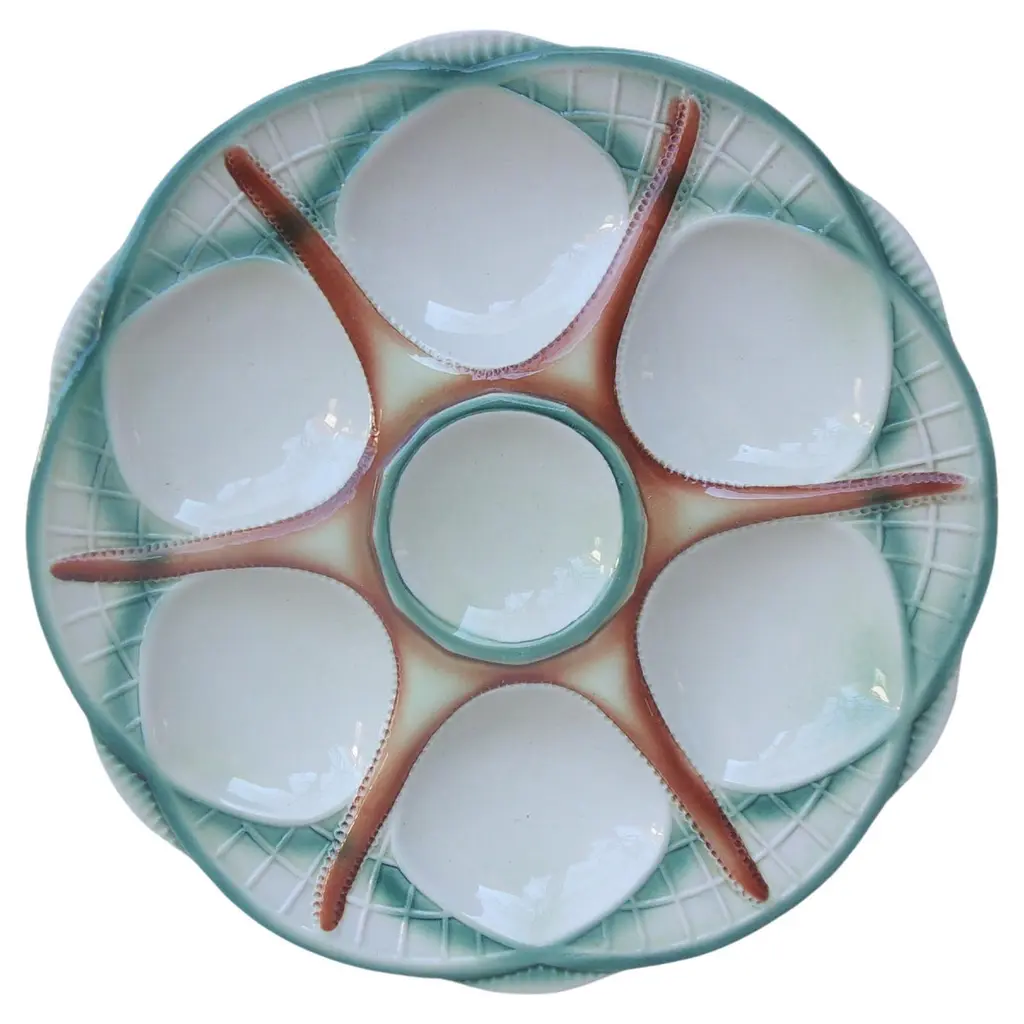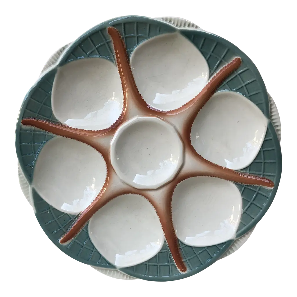 French Majolica Starfish Oyster Plate Digoin Sarreguemines, Circa 1920