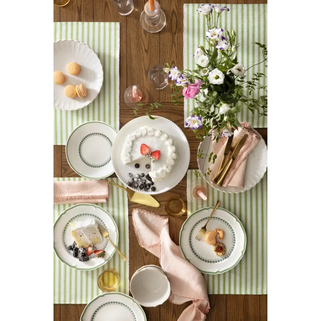 Introducing a fresh and feminine new design to celebrate the 10-year anniversary of French Perle. These dinner plates feature a twist on the classic country look with their clean, elegant motif, beautiful ruffles, and tea-stained finish. For distinct cafe charm, mix French Perle Scallop with any of our other coordinating collections, like Classic, Groove, and Bead.