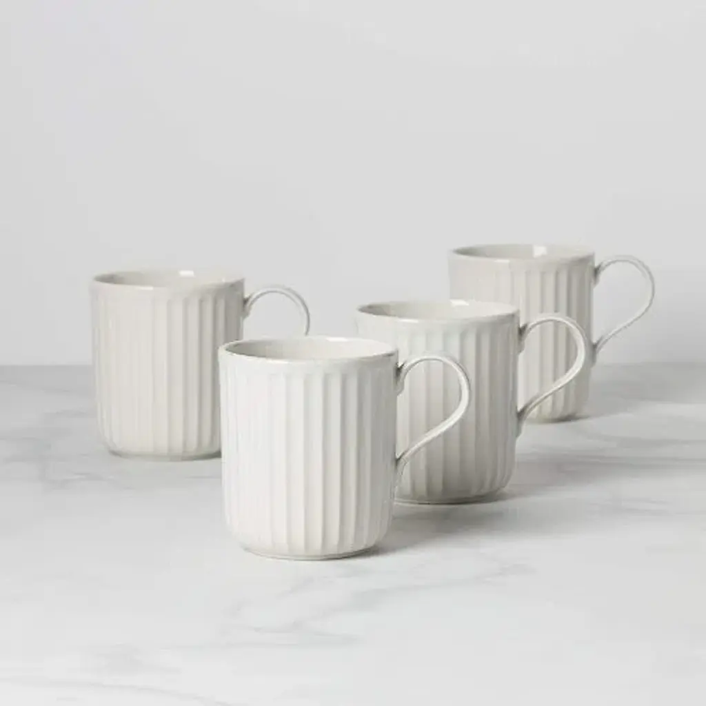 French Perle Scallop White Scallop 4-Piece Mug Set