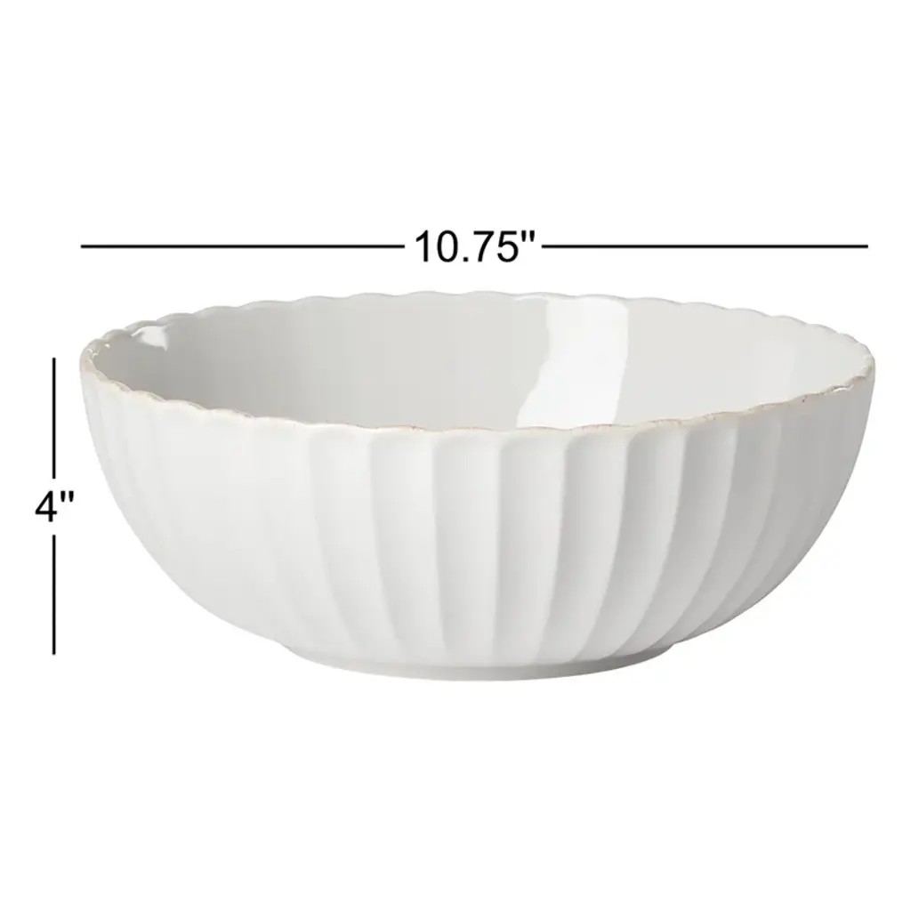 Introducing a fresh and feminine new design to celebrate the 10 year anniversary of French Perle] This serving bowl is a twist on the classic country look with its clean, elegant motif, beautiful design and tea-stained finish. For distinct cafe charm, mix French Perle Scallop with any of our other coordinating collections, like Classic, Groove and Bead. Bon appetit]