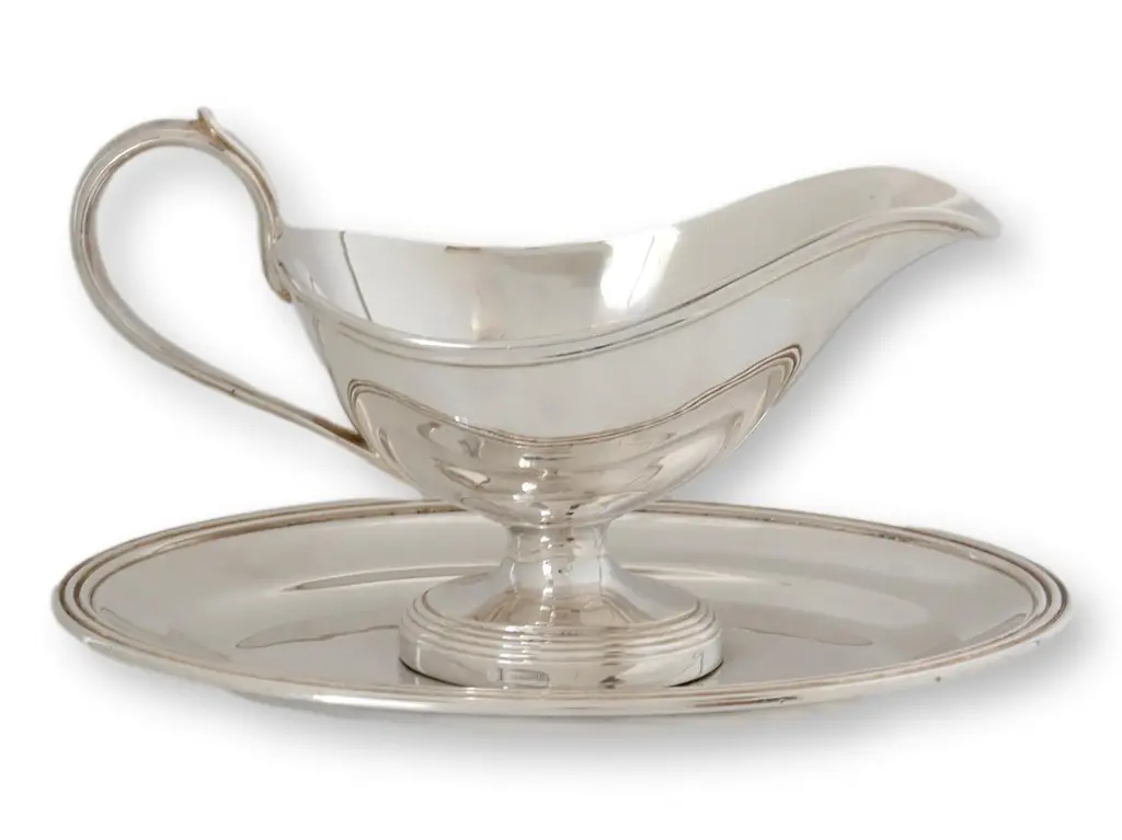 Indulge in luxury with this French Silver-Plate Christofle Gravy Boat. Renowned for its thick, lustrous plating, it exemplifies elegance, enhancing any dining experience with its gleaming presence. Attached undertray. Marked on underside.