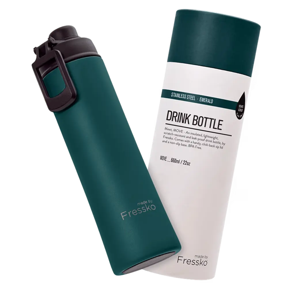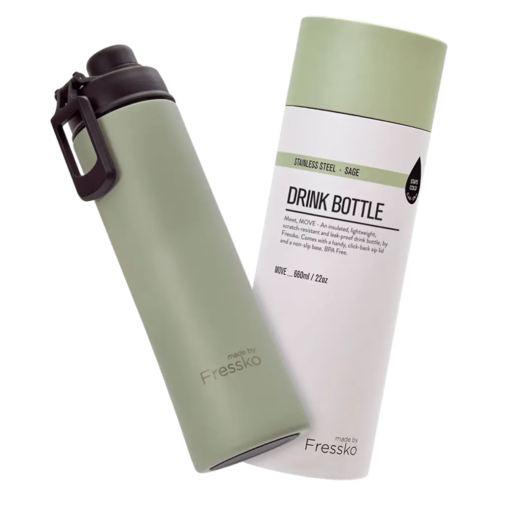 Sports functionality meets sustainable elegance.Fressko elevates your on-the-go refreshment with our elegantly designed, chemical-free, lightweight, insulated stainless steel reusable bottle equipped with our leak-proof sports lid, merging versatility with style for those always on the move.FeaturesStays cold for up to 12 hours, depending on use.Easy clean, no fuss, leak-proof lid with carry handle.Ideal for travel + sport.The outer stays cool to the touch.Stay chic and hydrated.Designed in Melbourne, Australia.Responsibly made in China.