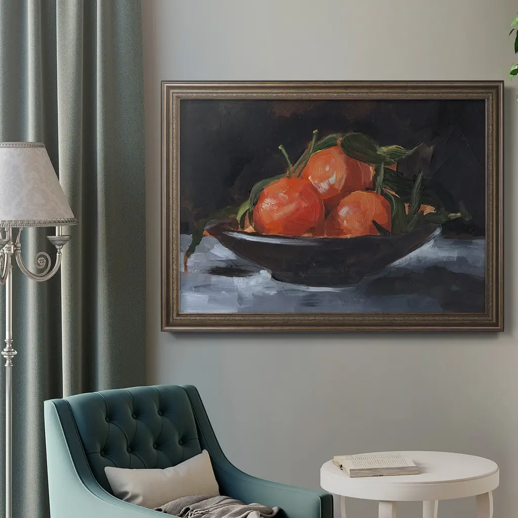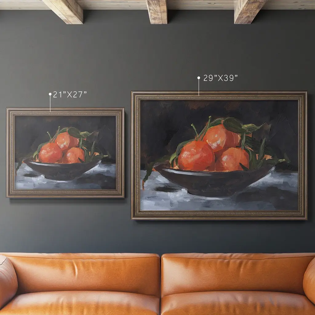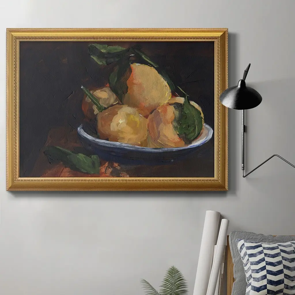 Fruit Plate II Premium Framed Canvas- Ready to Hang A Premium Framed Canvas created to last. Framed in distressed wood and available in an array of sizes and colors Featuring a beveled a solid wood stretcher bar, each piece comes ready to hand 3 SIZES AVAILABLE 16''X20'' - Overall Size 18'X27'' - Overall Size 24''x36'' - Overall Size Each piece is made to order. Each piece comes with hanging hardware. Made in the USA Ready to Hang Giclee Paper Print Acrylic Glass Beveled Matt Board