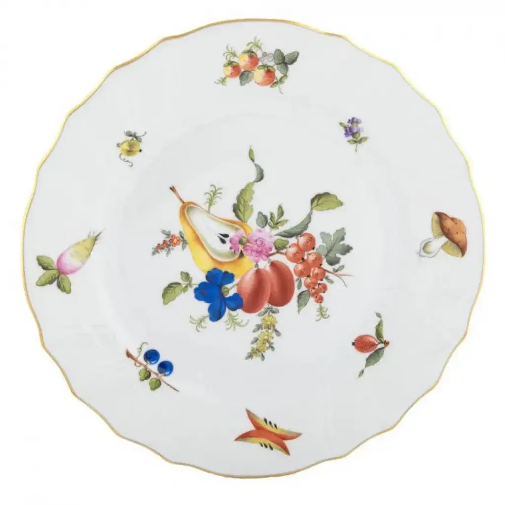Since its introduction in the 1860s this pattern, with its beautiful compositions of fruits and flowers, has been favored by many royal houses. The Imperial Court of Russia ordered a set after its display at the World Exhibition of 1900. Now the biggest porcelain manufactory in Europe, Herend was founded in 1826 to produce earthenware in the small Hungarian village for which it was named. At the time, Hungary was flooded with low-cost pottery, but in 1839, Mor Fischer became the Manufactory’s new owner and he decided to focus on producing dinnerware replacement pieces for Europe’s royal families to complement their valuable porcelain patterns from Germany and the Far East. As his client base grew, Fischer commissioned his artists to begin designing dinnerware patterns of their own. Queen Victoria’s 1851 purchase of a large set for Windsor Castle was a milestone, setting the stage for aristocrats throughout Europe to clamor for Herend in their estates. In the 1850s, Herend added meticulously-crafted figurines to its creations. Herend’s trademark fishnet pattern, which is widely recognized and prized as Herend’s signature design, started in 1858 when an artist who was intrigued with a Chinese plate’s fish scale design painted it onto a rooster figurine to imitate feathers.