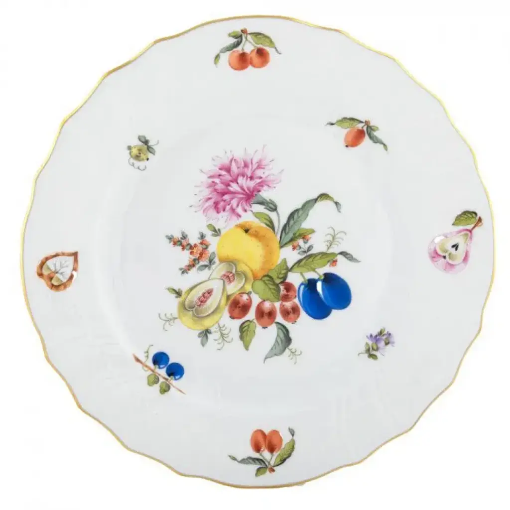 Since its introduction in the 1860s this pattern, with its beautiful compositions of fruits and flowers, has been favored by many royal houses. The Imperial Court of Russia ordered a set after its display at the World Exhibition of 1900. Now the biggest porcelain manufactory in Europe, Herend was founded in 1826 to produce earthenware in the small Hungarian village for which it was named. At the time, Hungary was flooded with low-cost pottery, but in 1839, Mor Fischer became the Manufactory’s new owner and he decided to focus on producing dinnerware replacement pieces for Europe’s royal families to complement their valuable porcelain patterns from Germany and the Far East. As his client base grew, Fischer commissioned his artists to begin designing dinnerware patterns of their own. Queen Victoria’s 1851 purchase of a large set for Windsor Castle was a milestone, setting the stage for aristocrats throughout Europe to clamor for Herend in their estates. In the 1850s, Herend added meticulously-crafted figurines to its creations. Herend’s trademark fishnet pattern, which is widely recognized and prized as Herend’s signature design, started in 1858 when an artist who was intrigued with a Chinese plate’s fish scale design painted it onto a rooster figurine to imitate feathers.