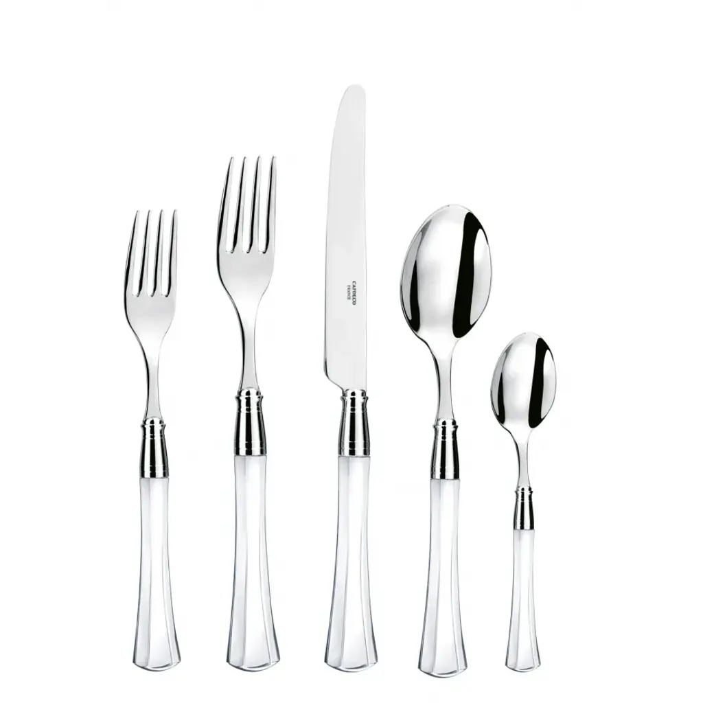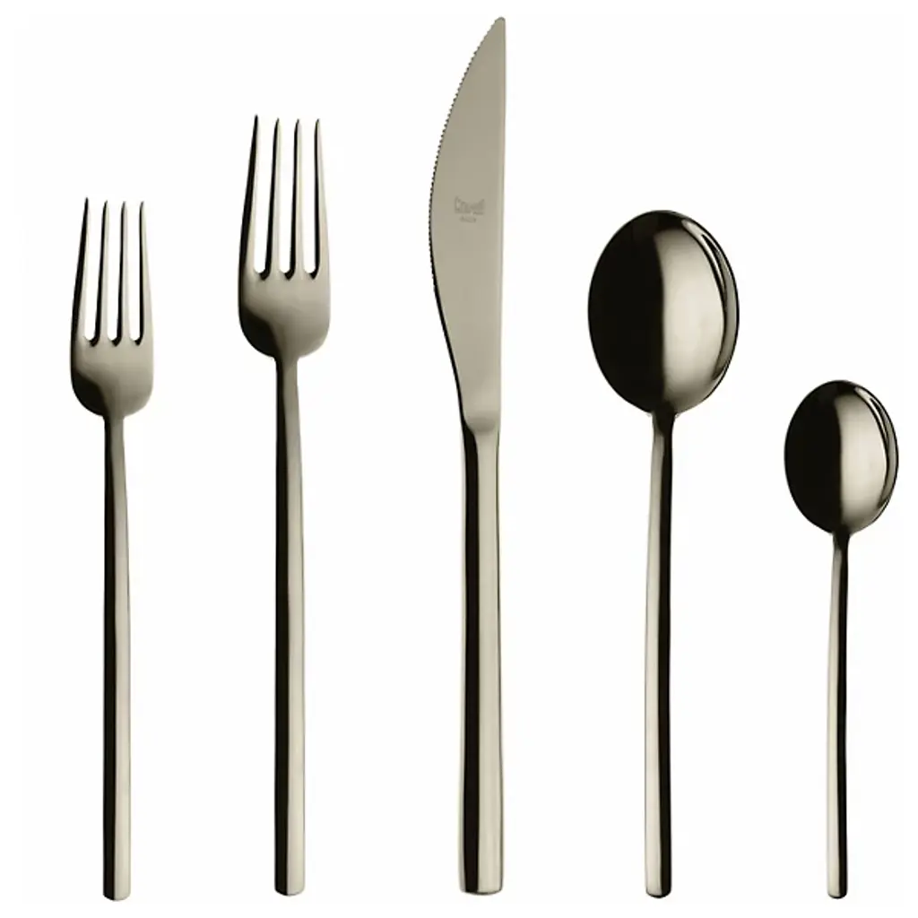 Every piece in the Fusain flatware line boasts a clean, modern bent that is just perfect for everyday use. - Five-piece setting includes Table Fork, Table Knife, Medium Teaspoon, Table Spoon, & Dessert Fork. - Four-piece hostess set includes Cake Lifter, Two Serving Spoons, & Serving Fork. - Service for 8 includes eight place settings, one serving spoon and one serving fork. - Service for 12 includes twelve place settings and one 4-piece hostess set. For over 60 years, Couzon has created contemporary, sleek flatware that emphasize balance and harmony.
