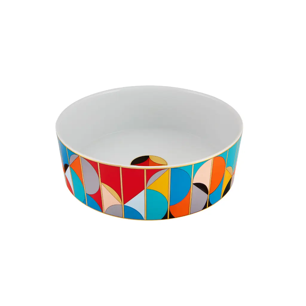 Master the art of food serving with a masterpiece of dinnerware design. The Vista Alegre Futurismo Salad Bowl brightens any dining table with a mesmerizing geometric pattern enhanced with gold detailing. The vibrant colors bring any space – and salad – to life, helping you impress your guests without even trying. Made from porcelain, this salad bowl is high-quality and robust, weighing almost 3 lbs, or 1.3 kg. Use it alongside simple dinnerware to add a colorful accent to your tablescape or enhance the visual impact further with the matching plates, trays, centerpieces and cups from the same collection.