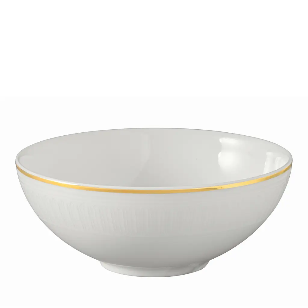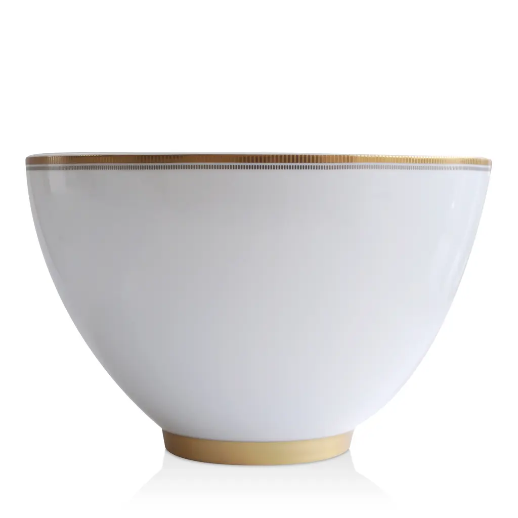 A striking gold and platinum trim brings elegant appeal to this dinnerware collection from Bernardaud.