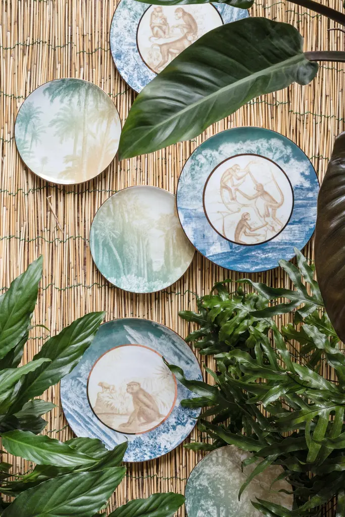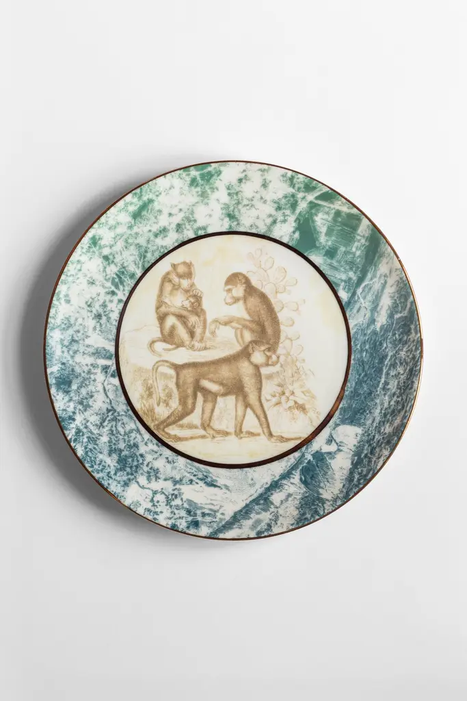 Galtaji, Six Contemporary Porcelain Dinner Plates With Decorative Design