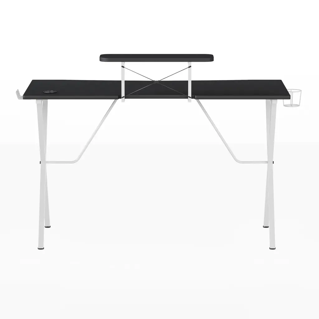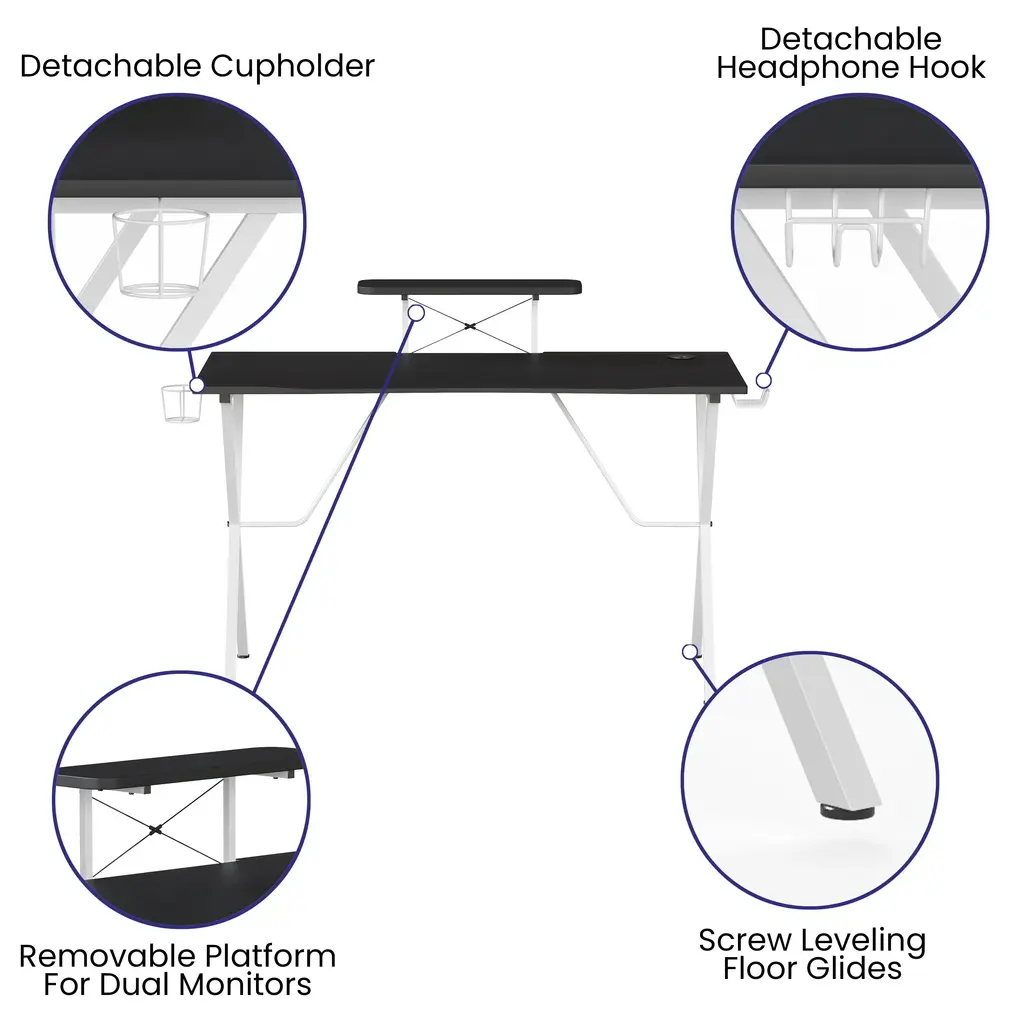 Up your gaming experience with this performance gaming desk to keep you committed to getting through the various player levels. Remove the monitor platform to house dual screens for an extreme gaming experience. For excitable players, this game station has a cup holder to prevent accidental spills. The multi-function workstation powers you through game sessions and work demands on a sturdy x-shape frame. Reduce neck strain by placing the monitor on the platform. Always know where your headset is by placing on the headset hook in between games. A cable management grommet offers a clutter-free location to feed cords. Upgrade the gamer or salesman in your home or office with this computer gaming desk. Complete your gaming setup with our Gaming Chair Racing Office Ergonomic Computer PC Chairs.