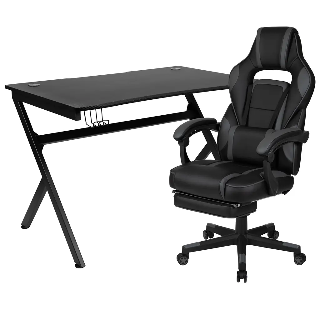 Gaming Desk With Cup Holder/headphone Hook/2 Wire Management Holes & Reclining Back/arms Gaming Chair With Footrest