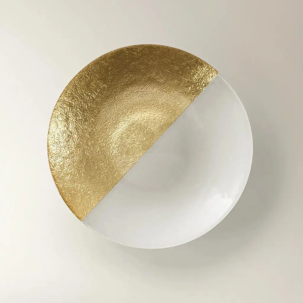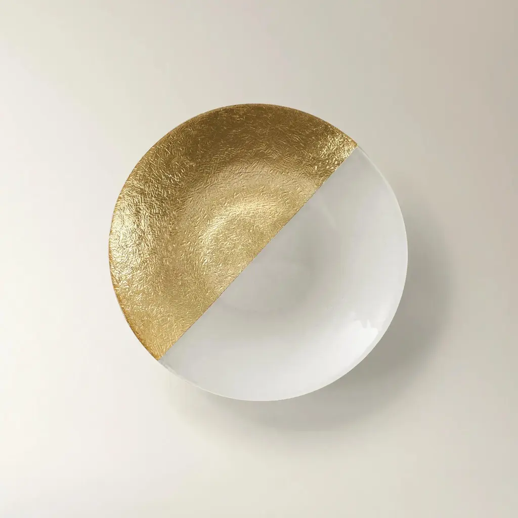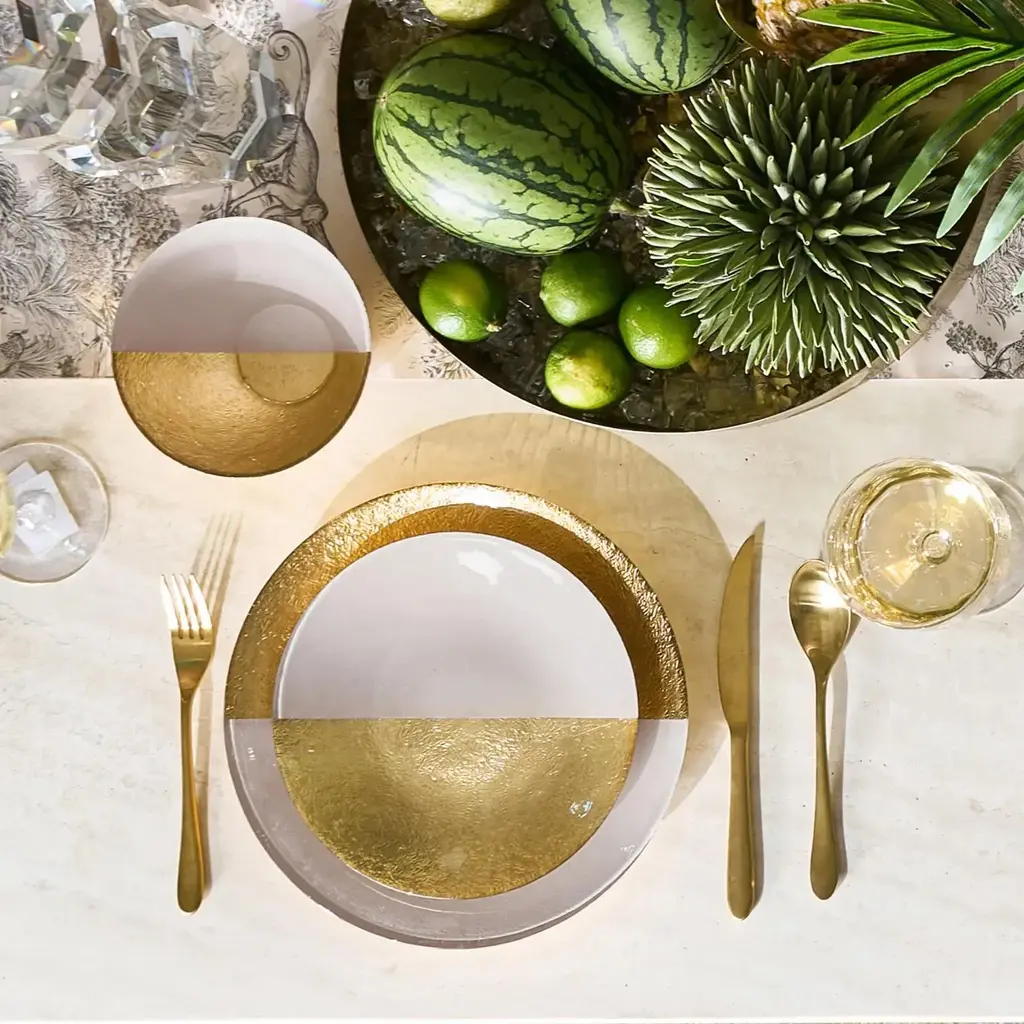 Transform your table setting with the Gemini Dinnerware Collection. Featuring a sleek two-toned design in white and gold glass, this set of four adds a sophisticated touch to your dining experience.
