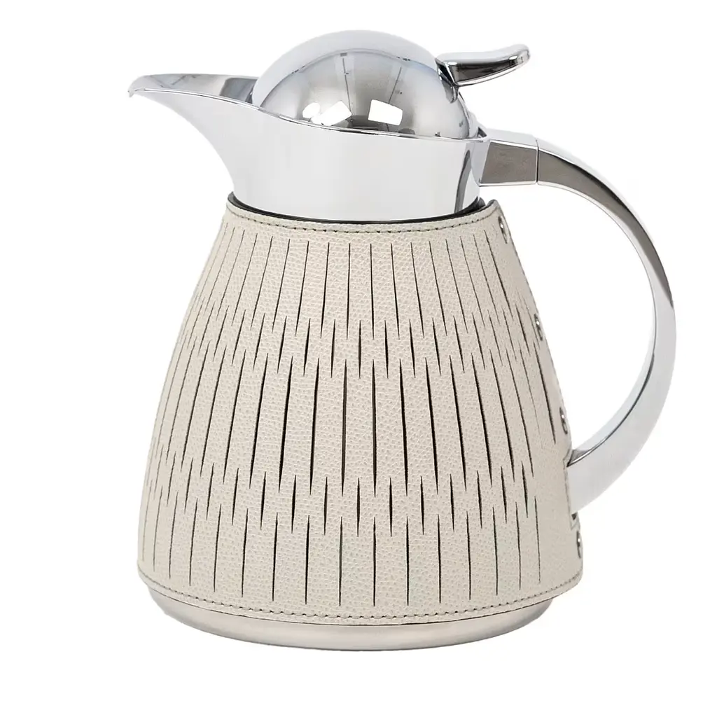 With a stainless steel structure partially covered in beige Finest Regenerated Leather that is both water-resistant and UV-resistant, the Gemma Medium Carafe is exceptionally elegant and highly functional. Featuring a 1 litre capacity, the stainless steel structure is removable for easy and practical cleaning and the carafe also features a rubber base.