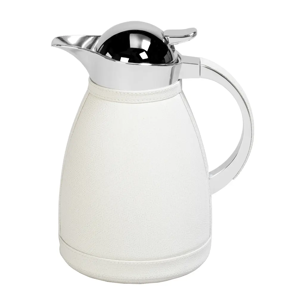 The Gemma Small Carafe features a stainless steel structure partially covered in Finest Regenerated Leather with an original and elegant design and a rubber base. With its Venezia pattern, reminiscent of exotic design in the fan-shaped cut-outs, the cover is completely water-resistant and UV-resistant. The stainless steel structure is removable for easy cleaning and has a capacity of 0.6 litres.