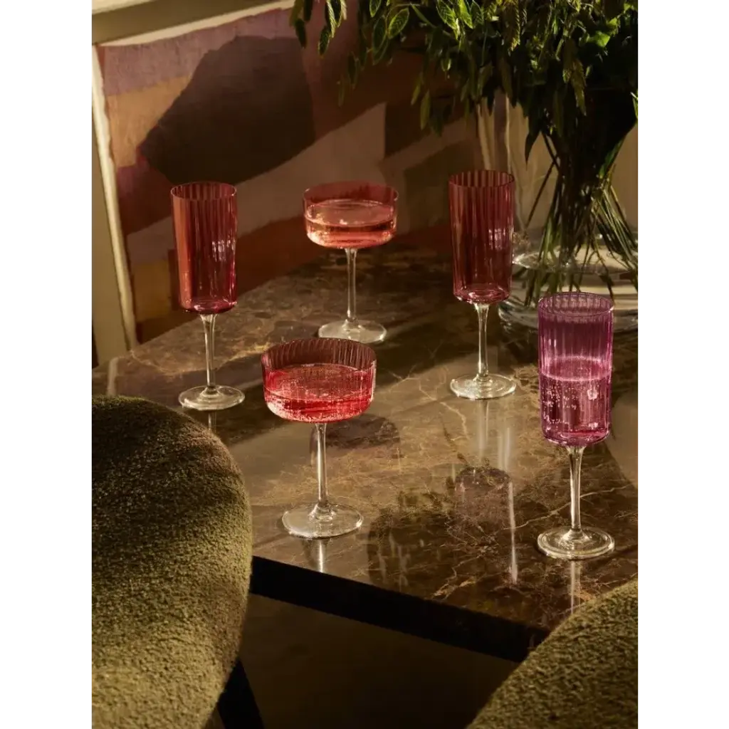 Gems Champagne Flute 7 Oz Assorted Garnet, Set Of 4