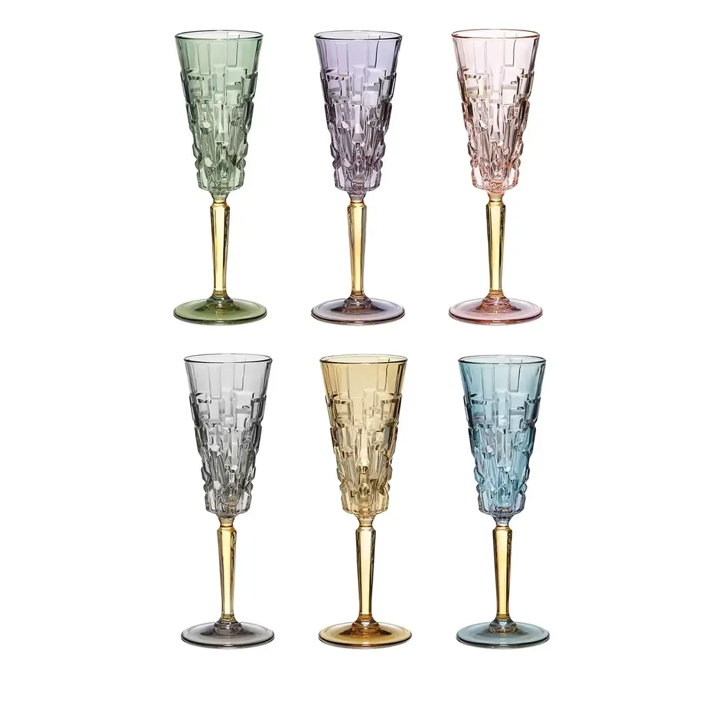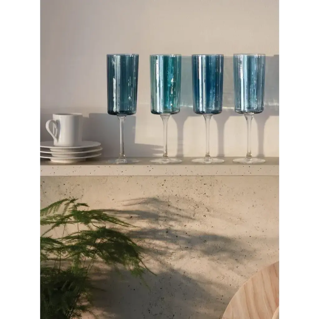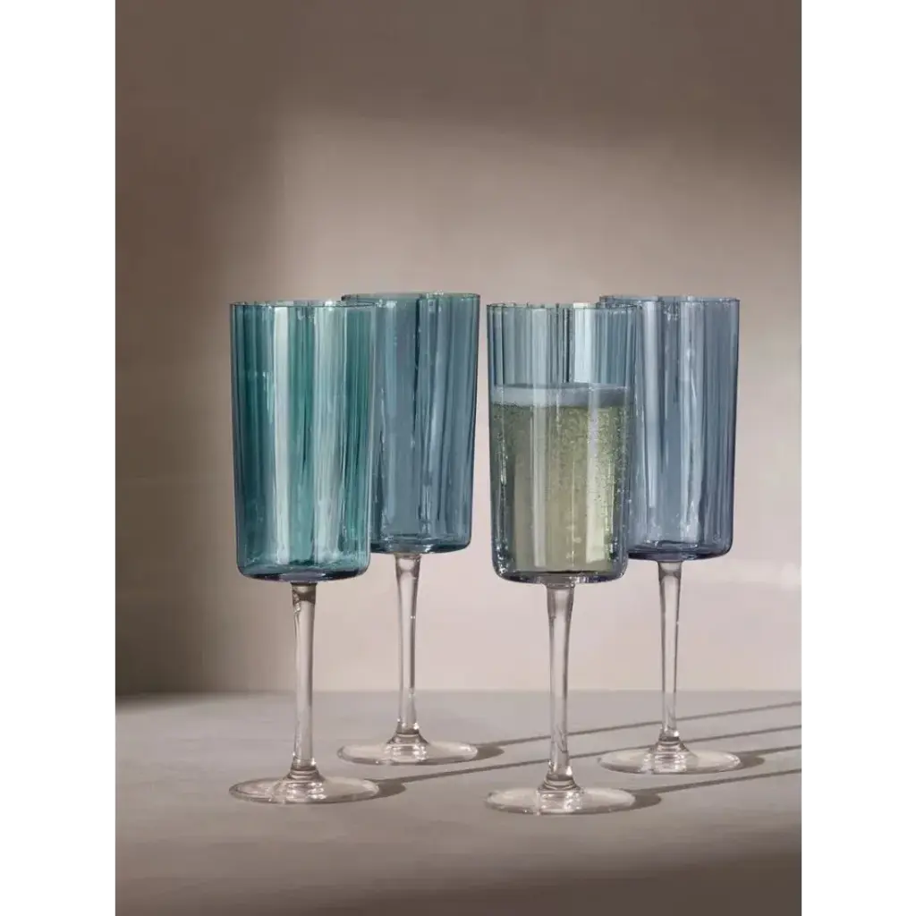 Gems Champagne Flute 7 Oz Assorted Sapphire, Set Of 4