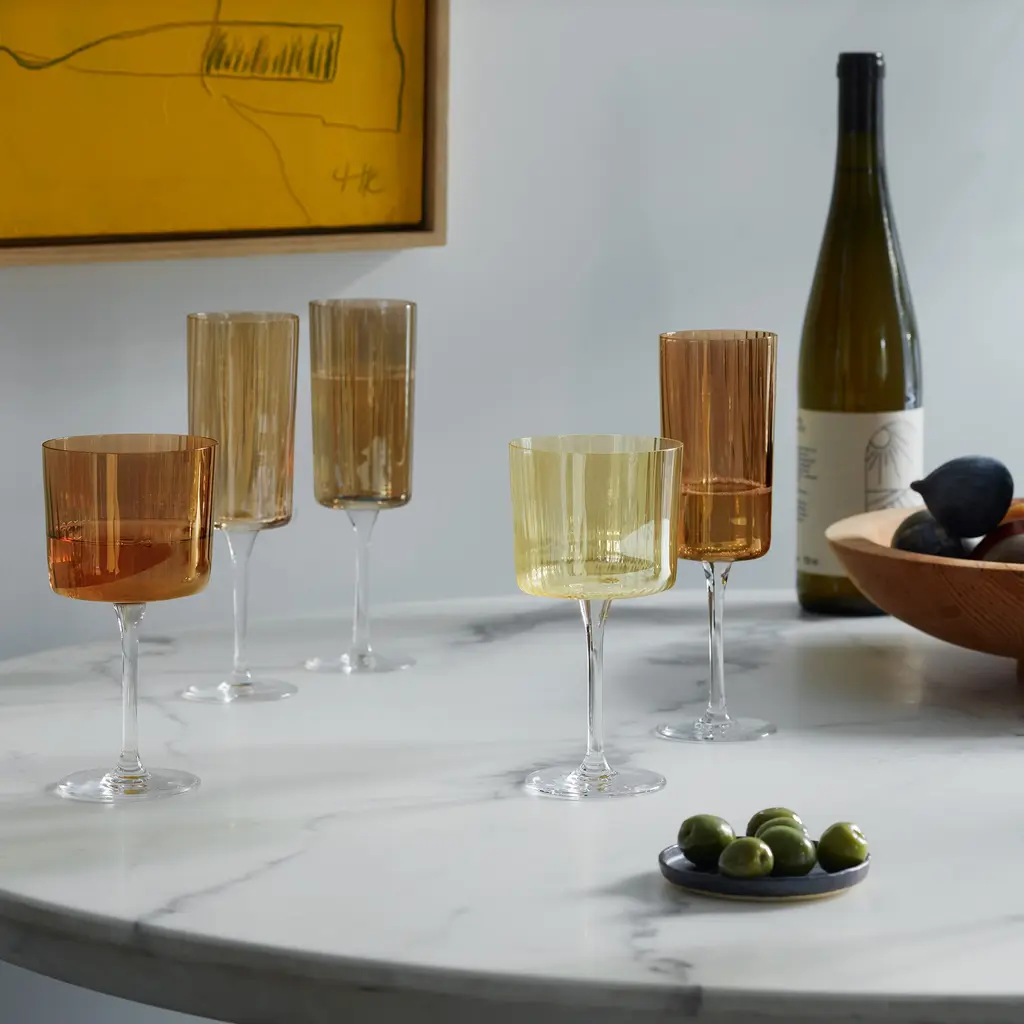 Update your glassware with the Gem Collection from LSA. The sleek textured pieces are hand-painted in contemporary tones that instantly freshen your tablescape.
