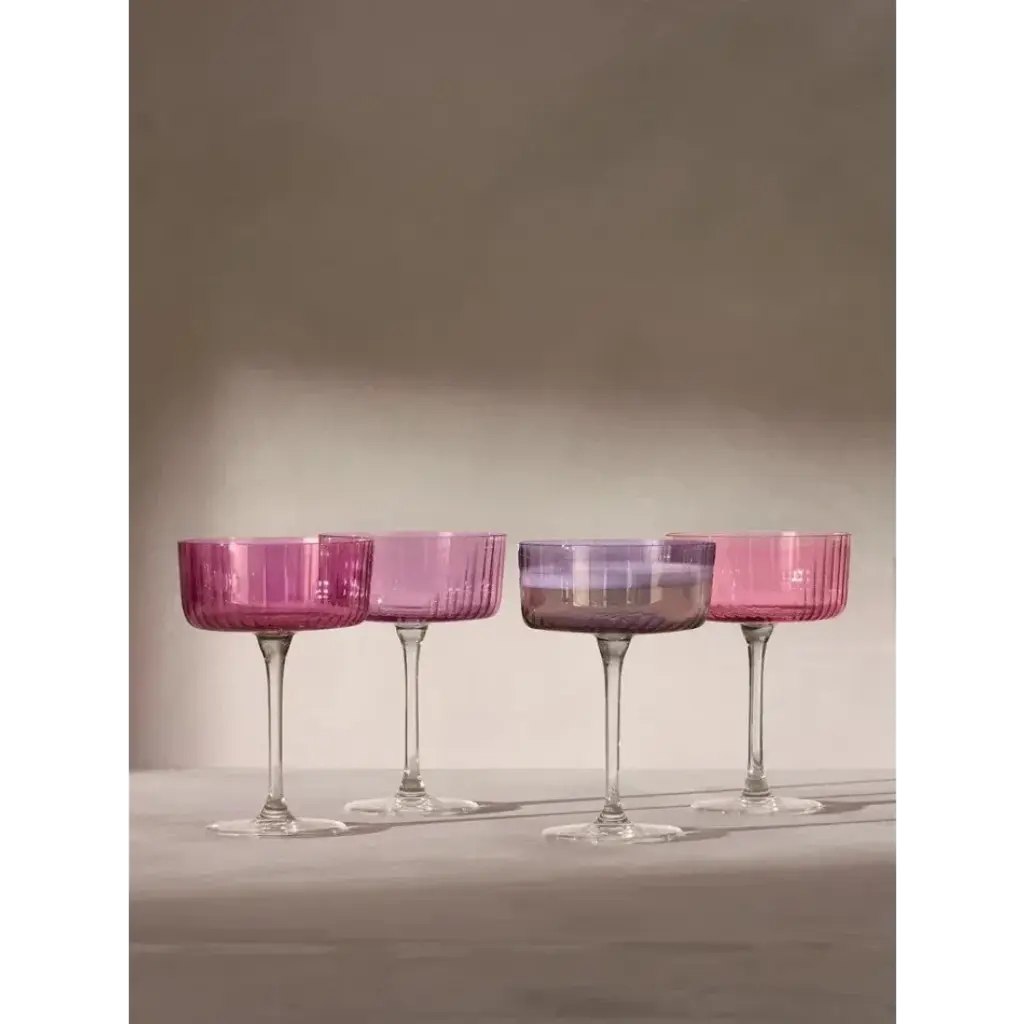 Gems Champagne/cocktail Glass 8 Oz Assorted Garnet, Set Of 4