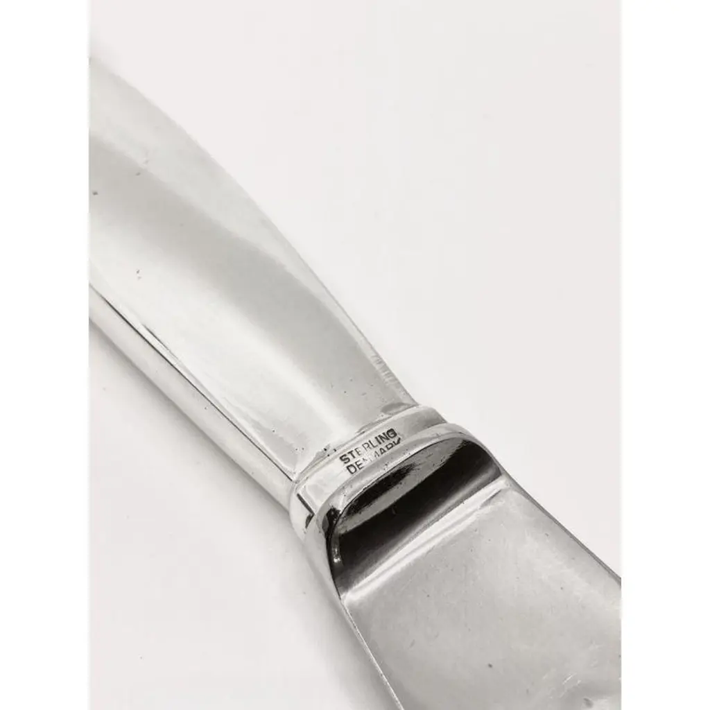 Georg Jensen dinner knife with short handle, sterling silver handle and stainless steel blade, item #013 in the very rare Bittersweet pattern, design #79 from 1940 by Gundorph Albertus. This is the sister pattern to Cactus, also designed by Gundorph Albertus.Additional information:Material: Sterling silver, stainless steelStyles: Art DecoHallmarks: With Georg Jensen hallmark, made in Denmark.Dimensions: Measures 9″ (22.5cm) in length.Condition: Excellent vintage condition