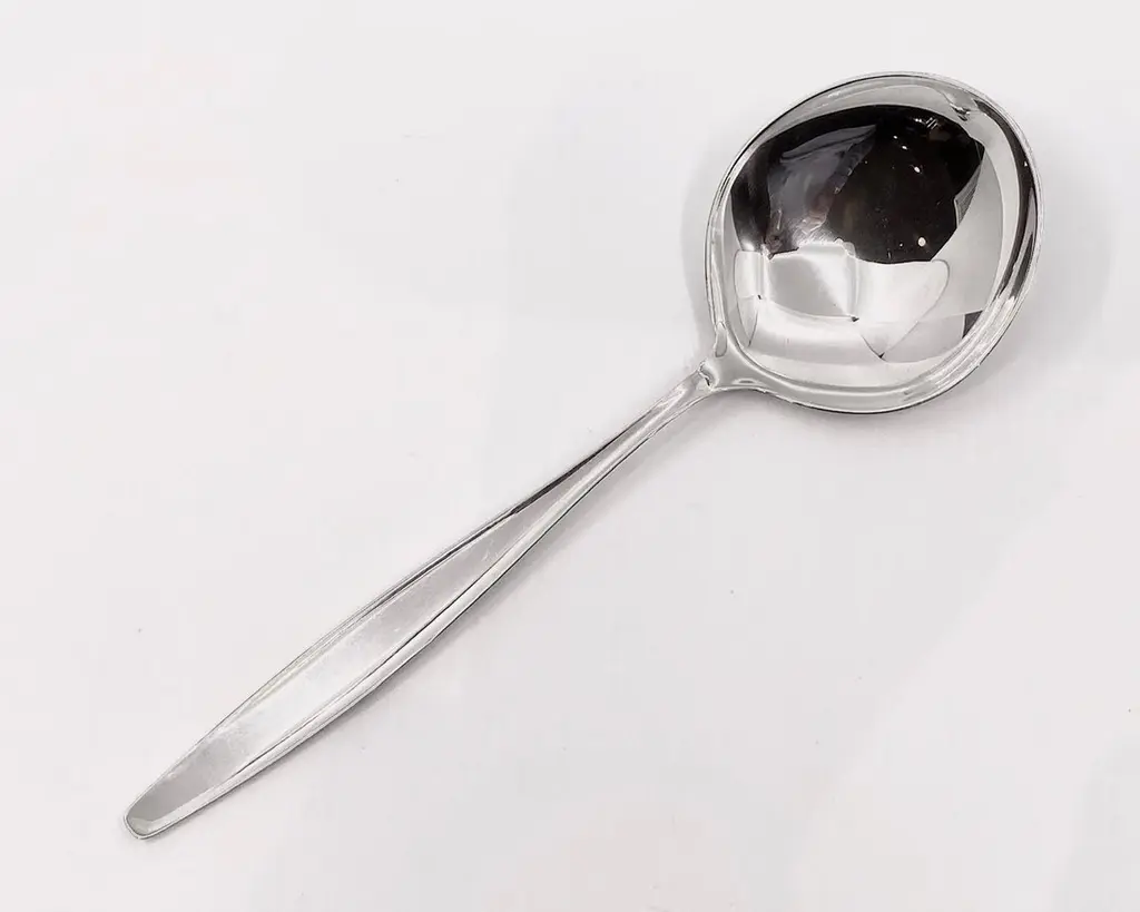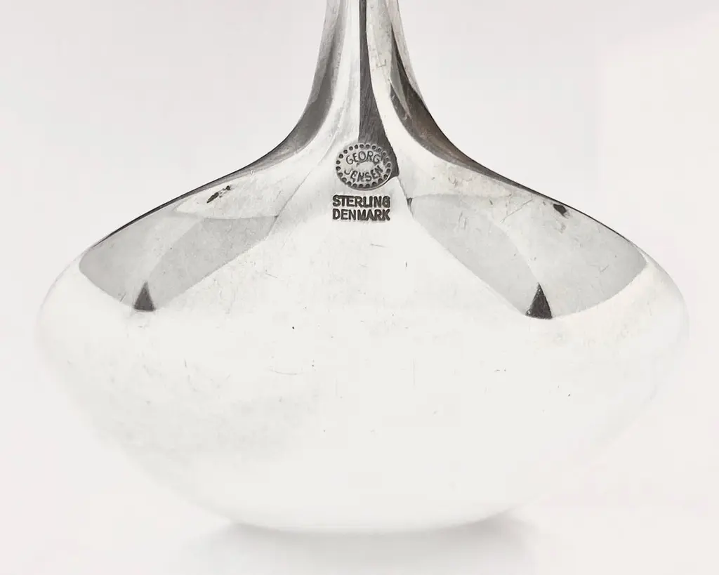 Georg Jensen sterling serving spoon, item 115 in the Cypress pattern, design #99 by Tias Eckhoff. Norwegian designer Tias Eckhoff’s Cypress was the winning design in a competition to design a flatware pattern for the 50th anniversary of the Georg Jensen Silversmithy in 1954.Additional information:Material: Sterling SilverStyle: ModernHallmarks: With Georg Jensen hallmark, made in Denmark.Dimensions: Measures 8 1/5″ (21.5cm) in length.Condition: Excellent
