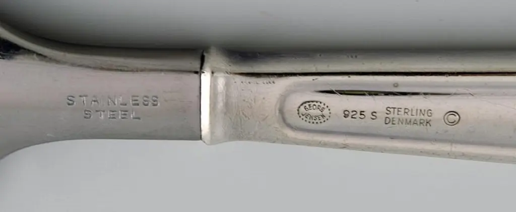 Rare Georg Jensen Koppel cutlery. Dinner spoon in sterling silver and stainless steel. Two spoons are available.Length: 18.8 cm.In excellent condition.Stamped.Designed by Henning Koppel in 1981.Our skilled Georg Jensen silversmith / goldsmith can polish all silver and gold so that it appears new. The price is very reasonable.