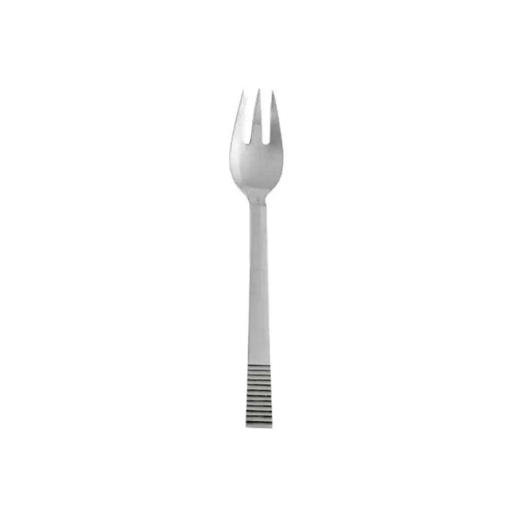 Georg Jensen sterling silver Parallel dinner fork 012b,designed in 1931 by Oscar Gundlach-Petersen. The Parallel pattern, flatware design #25 was designed by Oscar Gundlach-Pedersen from 1931. The Parallel design has an exceptional dignity, the result of harmonious proportions combined with an apparent simple motif of parallel lines. There are alternative shapes for the dining forks. Style A fork is a slender, traditional fork shape, style B and C are gradually more rounded and the tines are shorter.Additional information:Material: Sterling silverStyles: Art DecoHallmarks: With Georg Jensen hallmarks, made in Denmark.Dimensions: 7 1/4″ (18.2cm) in length.Condition: Excellent vintage condition