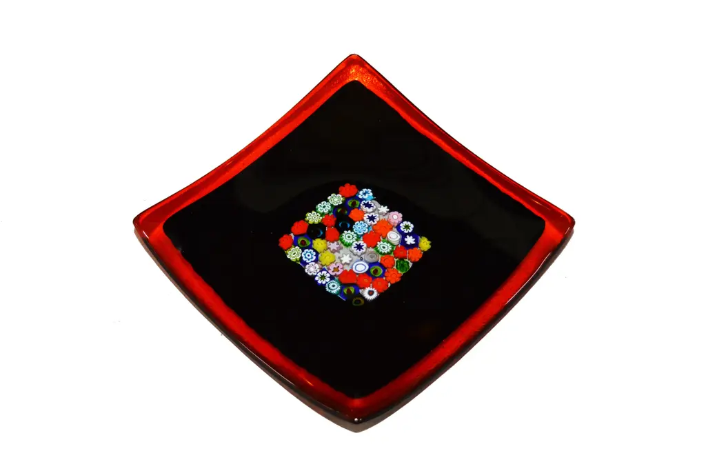 This dish comes in Murano glass with a central decoration in Venetian millefiori murrine. Signed by Maker,Labeled by Maker,Signed by Maker,Labeled by Maker