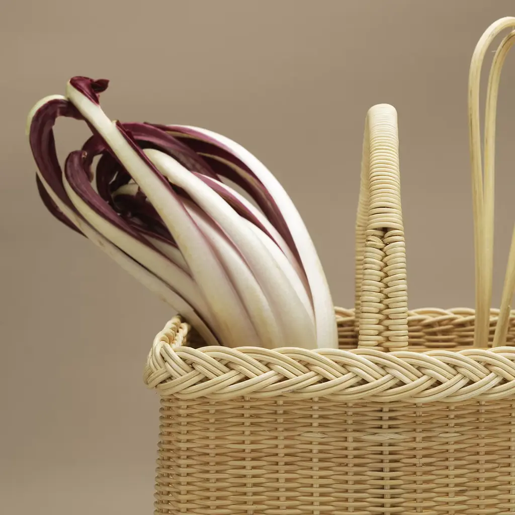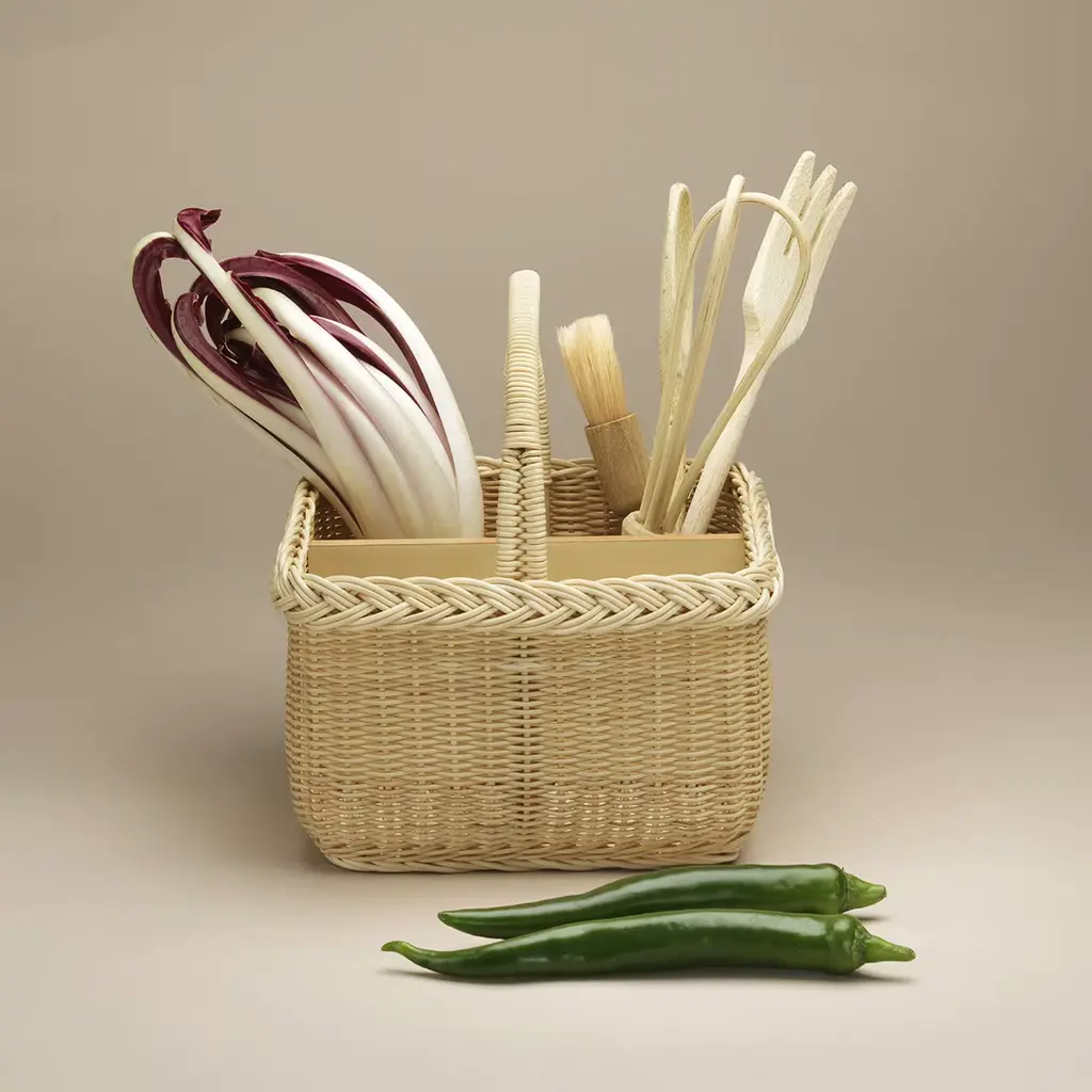 A showcase of impeccable weaving artistry, this basket brimming with traditional flair is designed to arrange flatware within the four wooden compartments. Reeds are minutely intertwined for an intricate weft of extraordinary visual and tactile appeal, its natural beauty maintained untouched thanks to a special water-based finish. A classic, curved handle completes the design.
