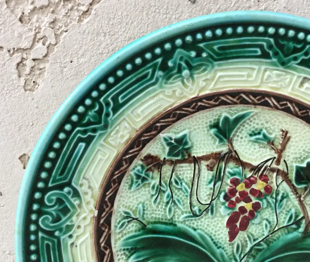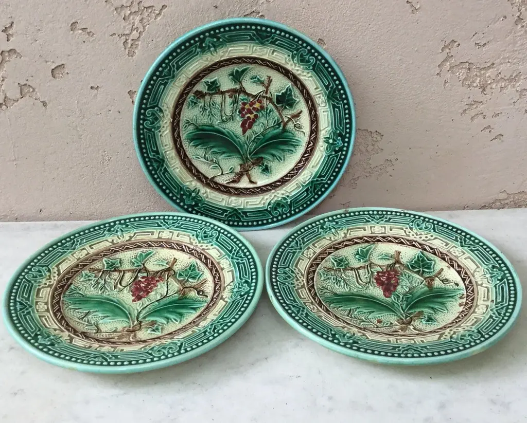 German Majolica red fruits plate, circa 1890.3 plates available.