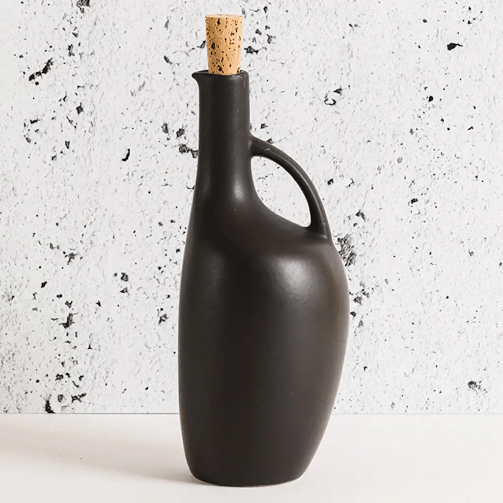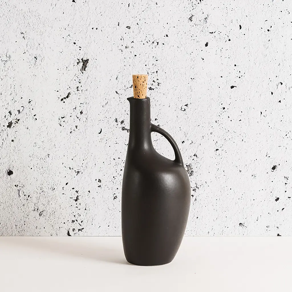 The look of this bottle is inspired by this pretty and adorable animal. Designed to hold olive oil, vinegar, or maple syrup, our handmade ceramic bottle is perfect to preserve the natural flavor and freshness of its content. Sourced from the Cap Bon peninsula in Tunisia, Gharyan Stoneware starts its life as pure, mineral-rich clay fed by the azure depths of the Mediterranean Sea. As an area steeped in the deeply ancient tradition of pottery, expert craftsmen have lived for generations among the citrus, roses, vines and jasmines in the gardens of Cap Bon, passing down thousands of years of pure artistry, hand-to-hand, to the artisans that continue to create our stoneware pieces today. At Gharyan, they believe in sustainability and fair trade and only work with partners that share these values. All products are made in Tunisia where it's guaranteed that workers benefit from every right: social insurance, 8 hours work/day, 5 days/week, enrolment with the Tunisian National Labour Union, safe working conditions, no child labour, and no labour exploitation.