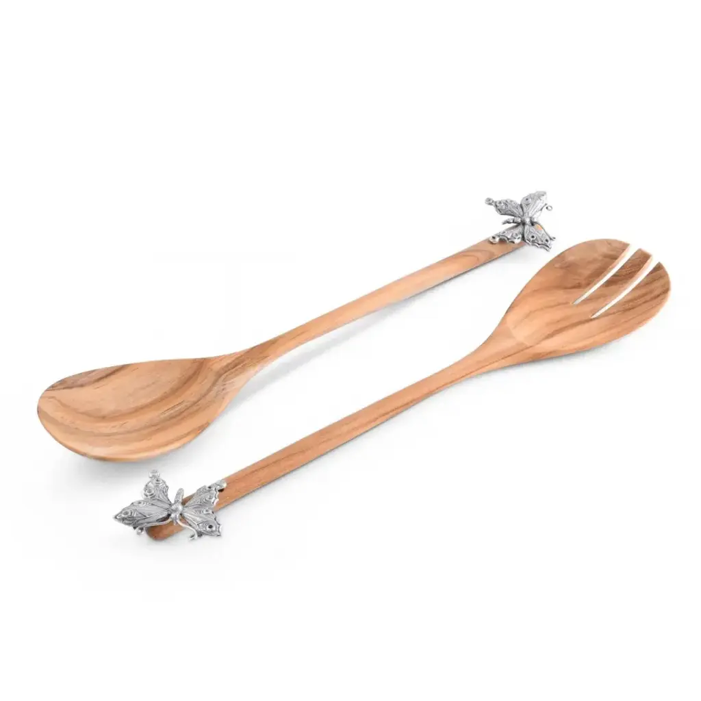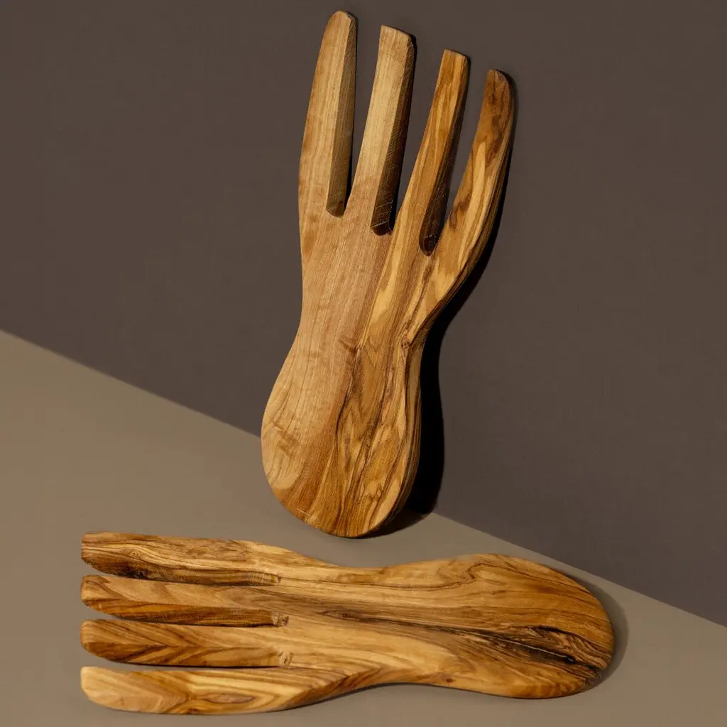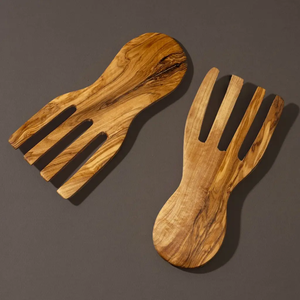 Gharyan Stoneware, Olive Wood Salad Servers Flat Forks Set