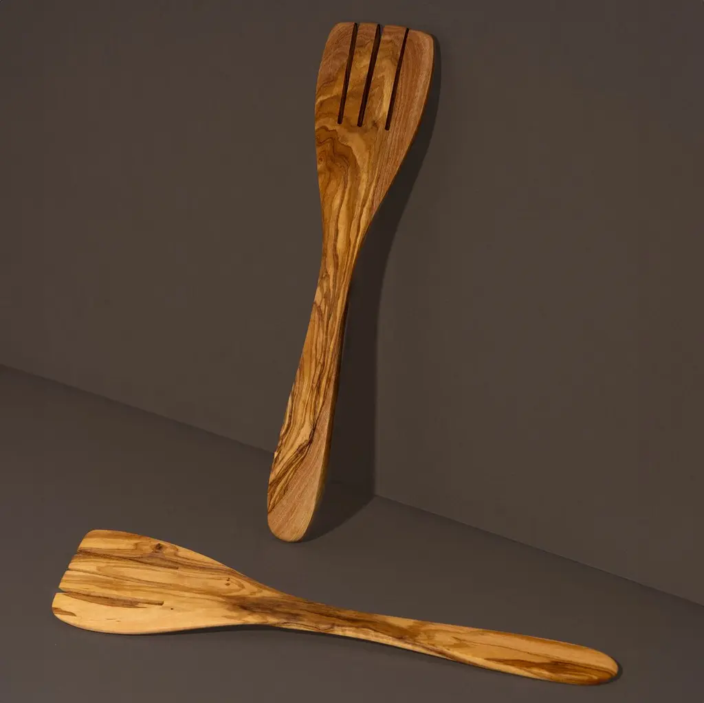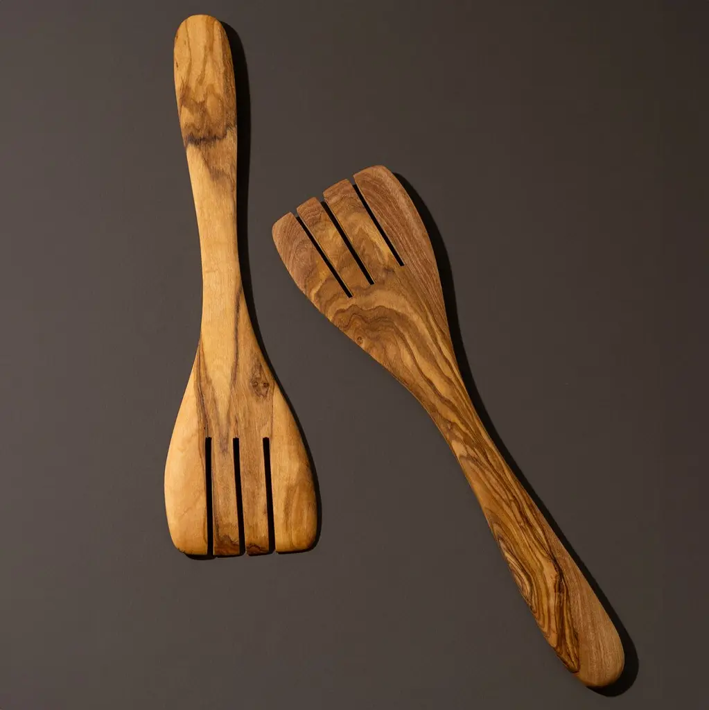 Gharyan Stoneware, Olive Wood Serving Spatula Forks - Pair