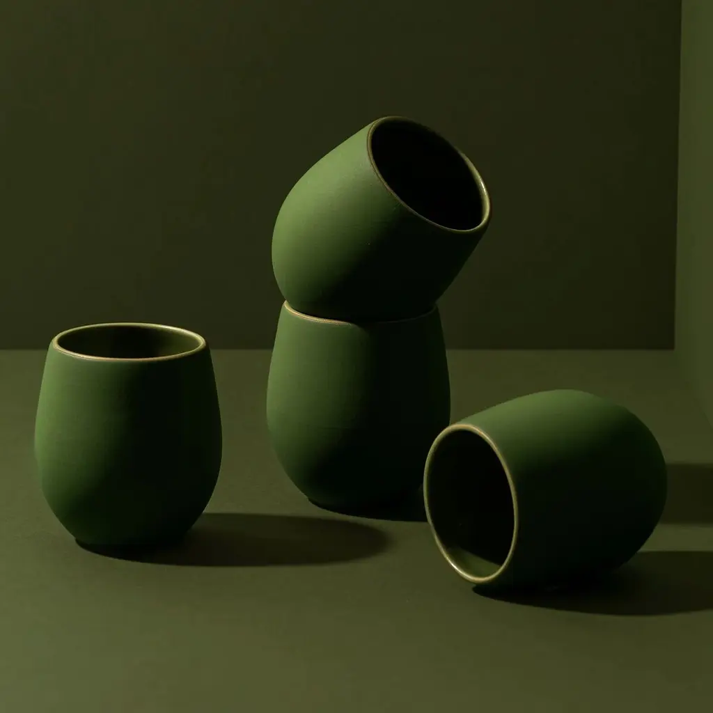 Gharyan Stoneware, Set Of 4 Coffee Tea Cup Epa 10 Oz, Green