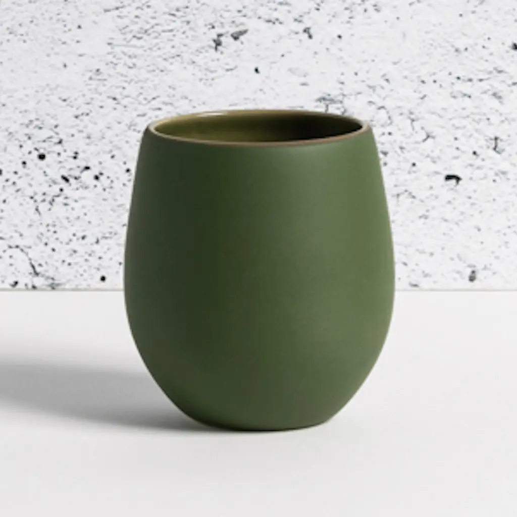 Rounded and organically shaped drinkware, handmade by local artisans and designer-made, this coffee cup collection is special and unique by its matte finish. It is a durable collection made with naturally robust and toxic-free stoneware. Sourced from the Cap Bon peninsula in Tunisia, Gharyan Stoneware starts its life as pure, mineral-rich clay fed by the azure depths of the Mediterranean Sea. As an area steeped in the deeply ancient tradition of pottery, expert craftsmen have lived for generations among the citrus, roses, vines and jasmines in the gardens of Cap Bon, passing down thousands of years of pure artistry, hand-to-hand, to the artisans that continue to create our stoneware pieces today. At Gharyan, they believe in sustainability and fair trade and only work with partners that share these values. All products are made in Tunisia where it's guaranteed that workers benefit from every right: social insurance, 8 hours work/day, 5 days/week, enrolment with the Tunisian National Labour Union, safe working conditions, no child labour, and no labour exploitation.