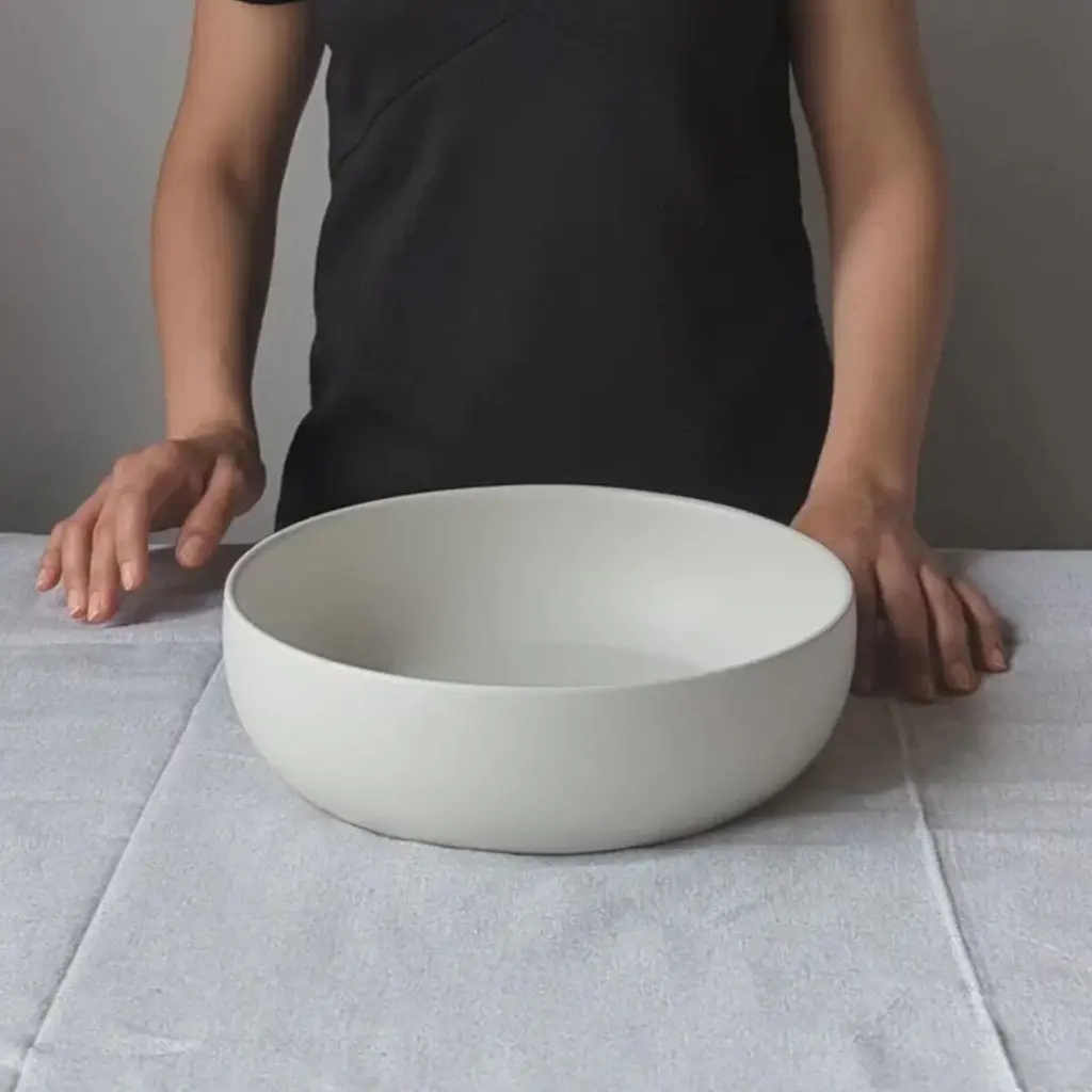 Our brand new serving coupelle silhouette, shallow, minimal and so chic! Perfect for effortless and elegant dining. Just wonder what would you put in this bowl! Sourced from the Cap Bon peninsula in Tunisia, Gharyan Stoneware starts its life as pure, mineral-rich clay fed by the azure depths of the Mediterranean Sea. As an area steeped in the deeply ancient tradition of pottery, expert craftsmen have lived for generations among the citrus, roses, vines and jasmines in the gardens of Cap Bon, passing down thousands of years of pure artistry, hand-to-hand, to the artisans that continue to create our stoneware pieces today. At Gharyan, they believe in sustainability and fair trade and only work with partners that share these values. All products are made in Tunisia where it's guaranteed that workers benefit from every right: social insurance, 8 hours work/day, 5 days/week, enrolment with the Tunisian National Labour Union, safe working conditions, no child labour, and no labour exploitation.