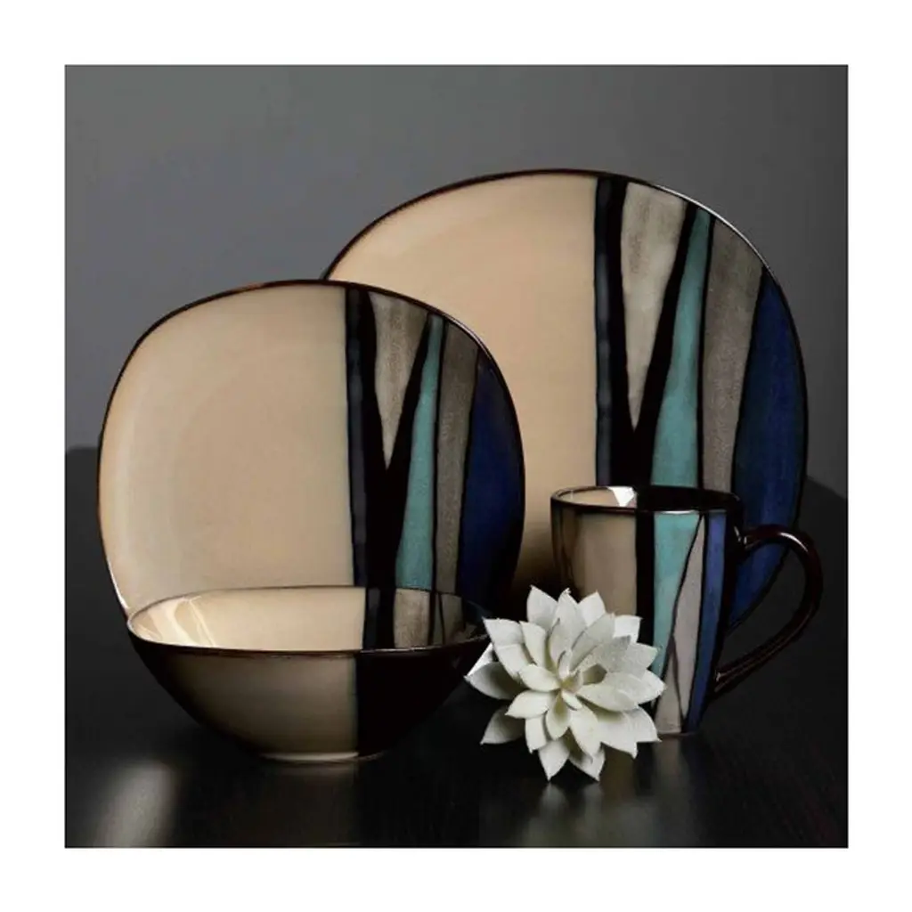 Your dinner guests will admire the presentation of the embossed reactive glaze on the stoneware of the Gibson Elite 16-Piece Reactive Glaze Dinnerware Set. The teal Gibson Elite 16-piece dishware set offers distinguished style for any table with a design that features a cool cream color and striking teal details. This dinnerware set includes 4 dinner plates, 4 dessert plates, 4 bowls, and 4 mugs. Each dishware piece is made of durable stoneware and a reactive glaze finishing technique. This basic dishware set brings the beauty of nature to your tabletop while also being dishwasher and microwave safe to make cleaning easy. This table dish set is made for long-lasting beauty and durability to ensure use for many dinners to come. This formal or casual dining set is the perfect touch with every dinner of your choice. No matter the occasion, you'll love setting the table with the Gibson Elite 16-piece dinner set for years to come.