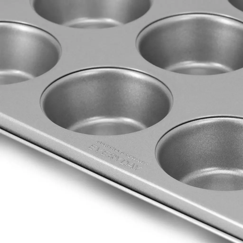 Bake your favorite cupcakes, muffins, egg bites, and more at home with the Gibson Everyday stainless steel 12 cup muffin pan. Constructed of sturdy stainless steel that heats evenly for consistent results every time, this 12-cup pan will become your go to for weekly food prep. Nonstick interior coating makes for easy release and eliminates the need for paper liners. Bake your favorite treats with the quality bakeware you deserve!
